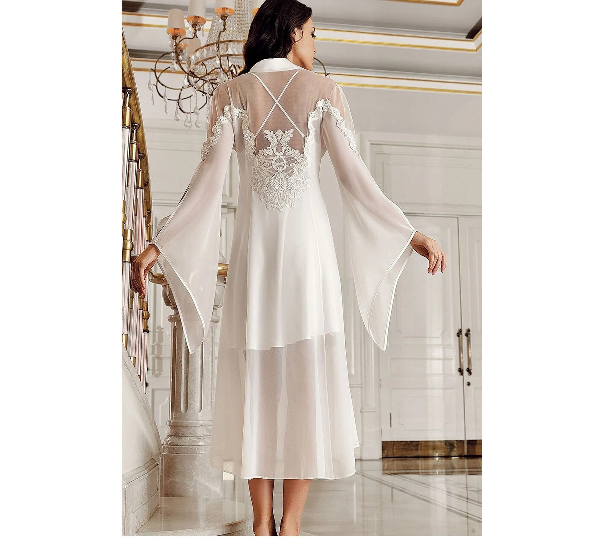 "The ivory bridal nightgown presents itself as a perfect combination of elegant sophistication ...