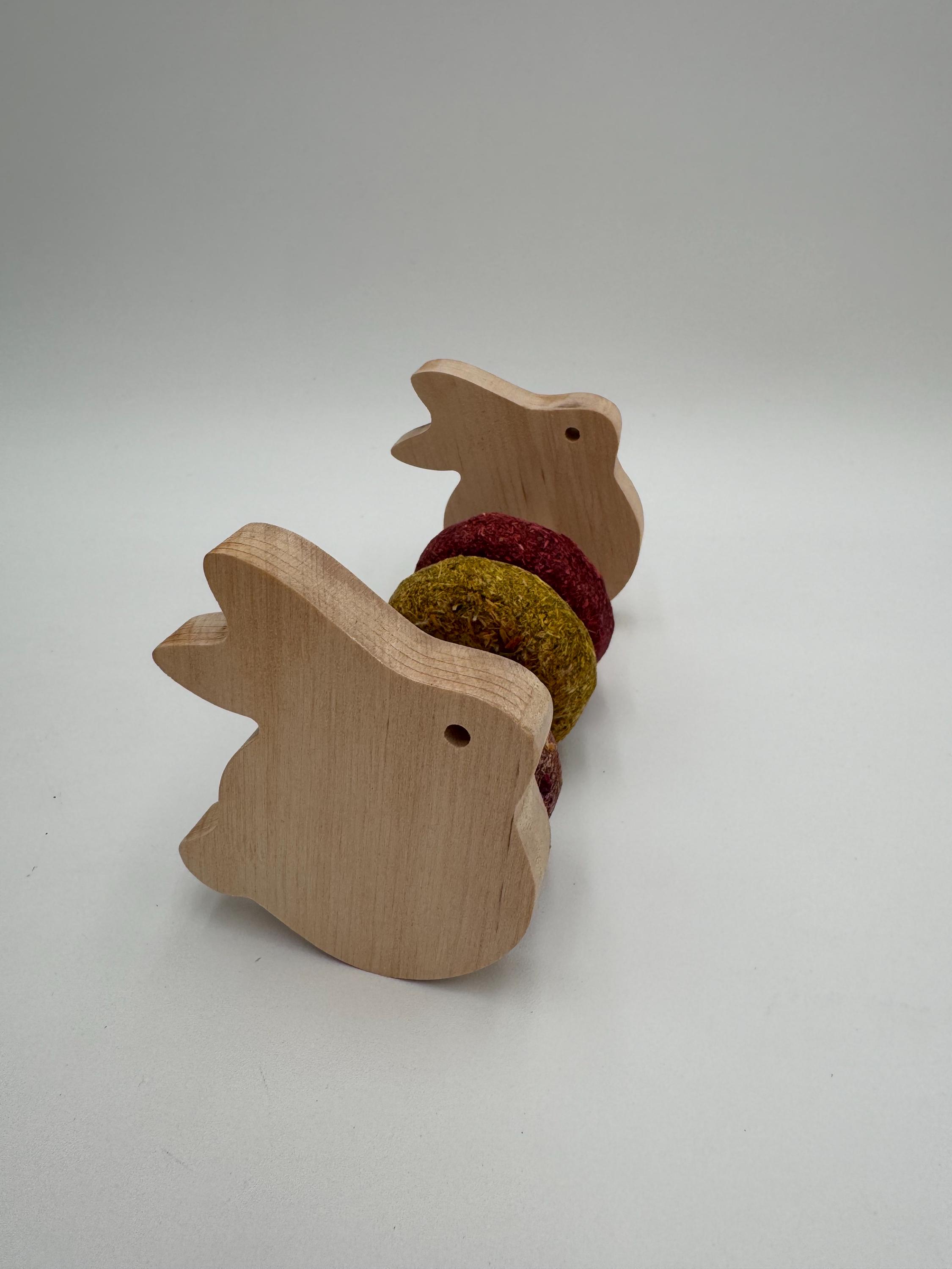 • Wooden bunny toy with Timothy Hay Donuts for Bunnies. Bunny Treats....