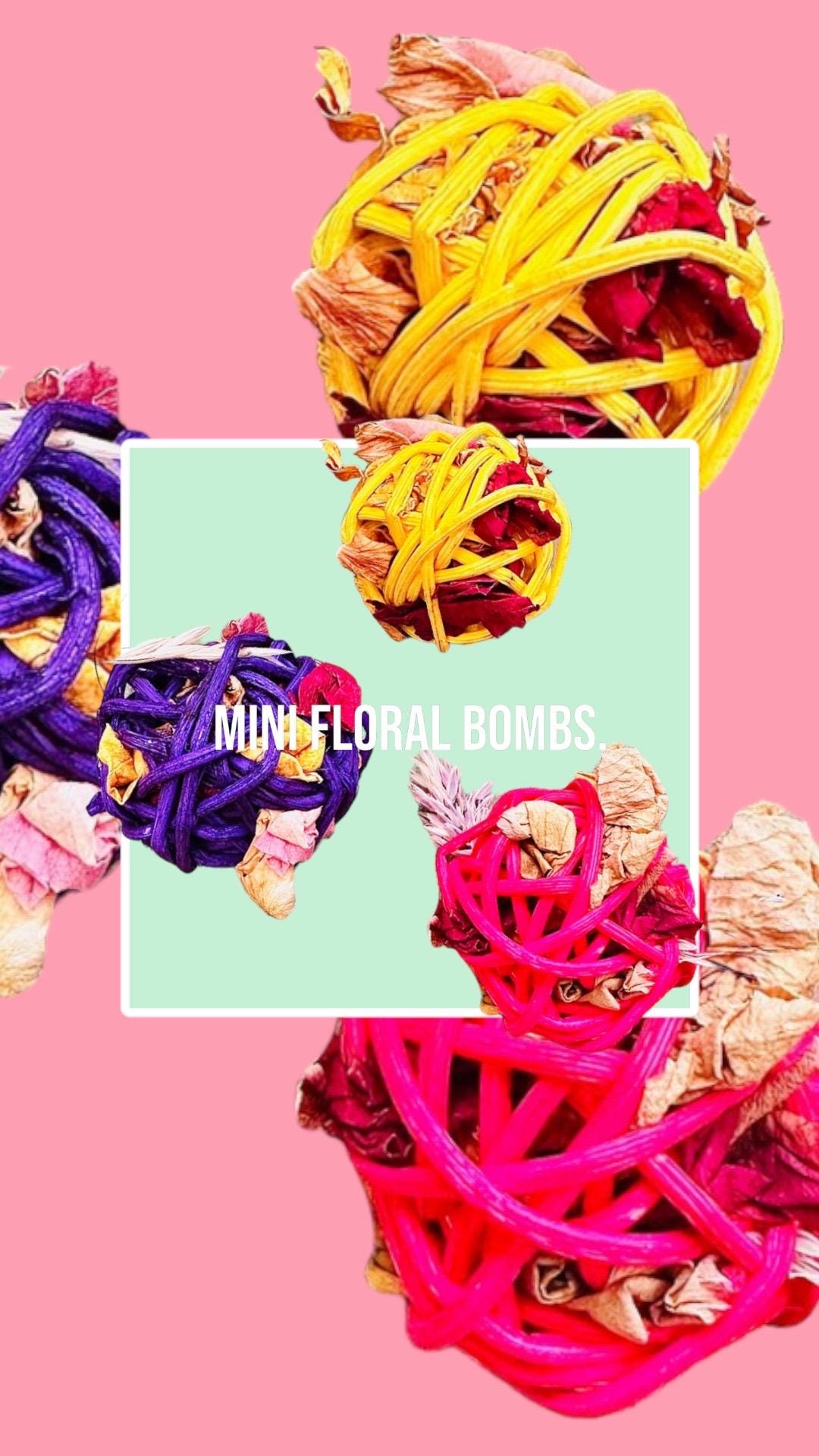3 Organic dried Mini Floral Bomb ball Trio pet treat chew toy, halloween treat pet rabbit gift, guin...