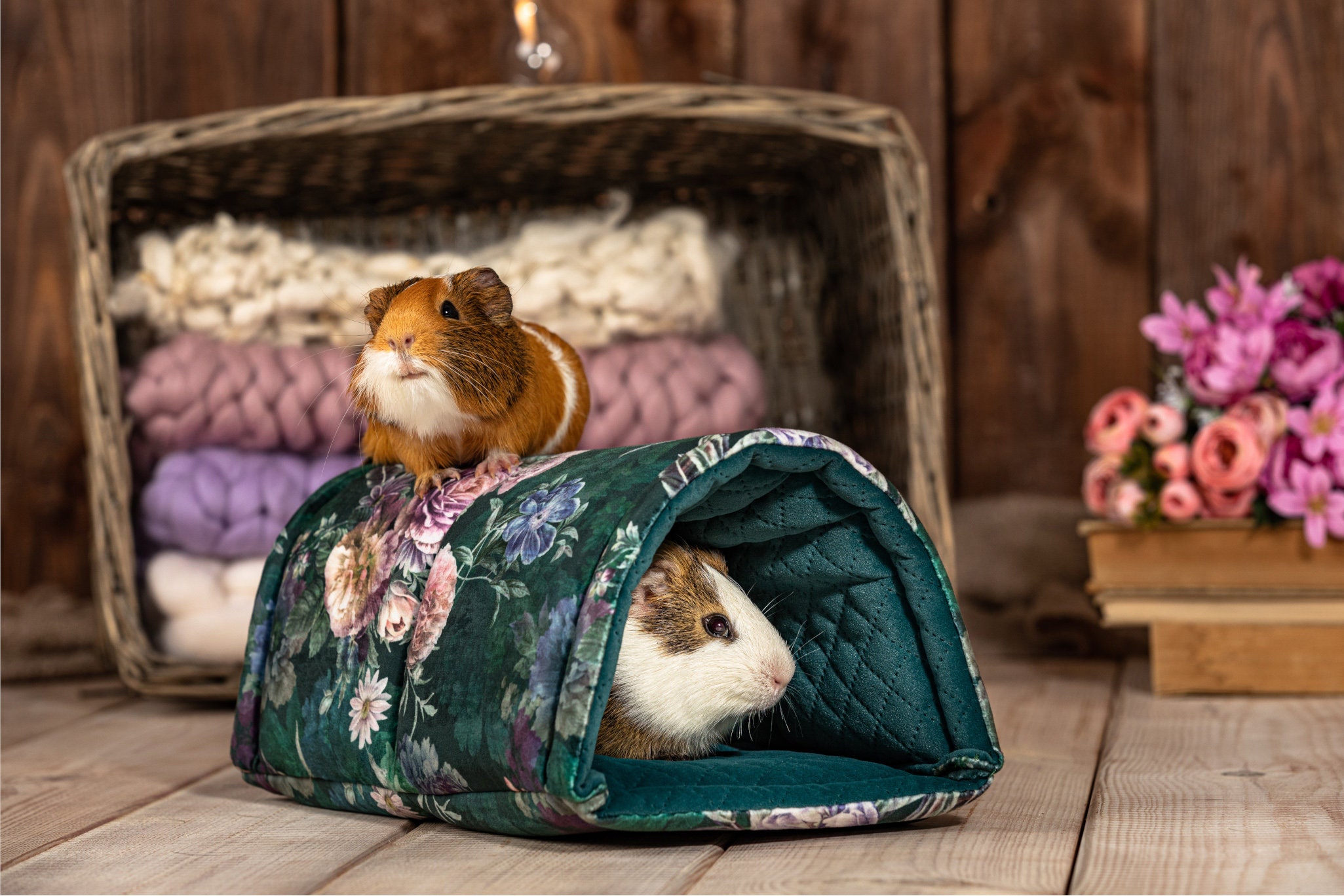 Floral Guinea Pig Bed, Cozy Hideout, Small Animal Cave