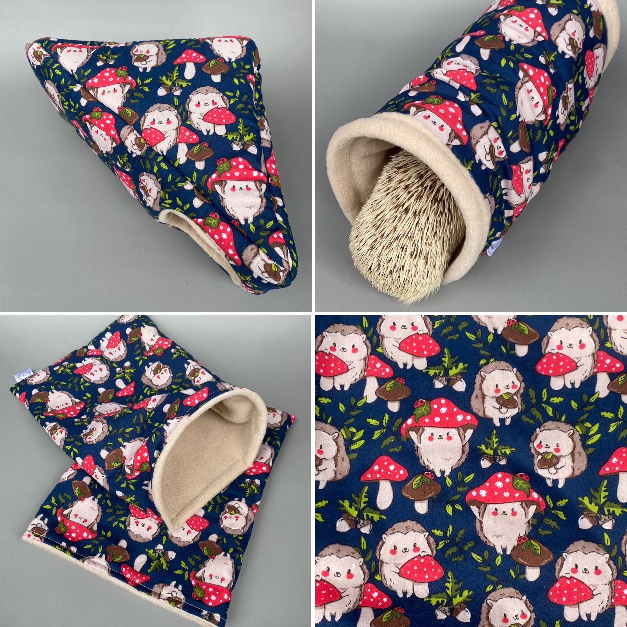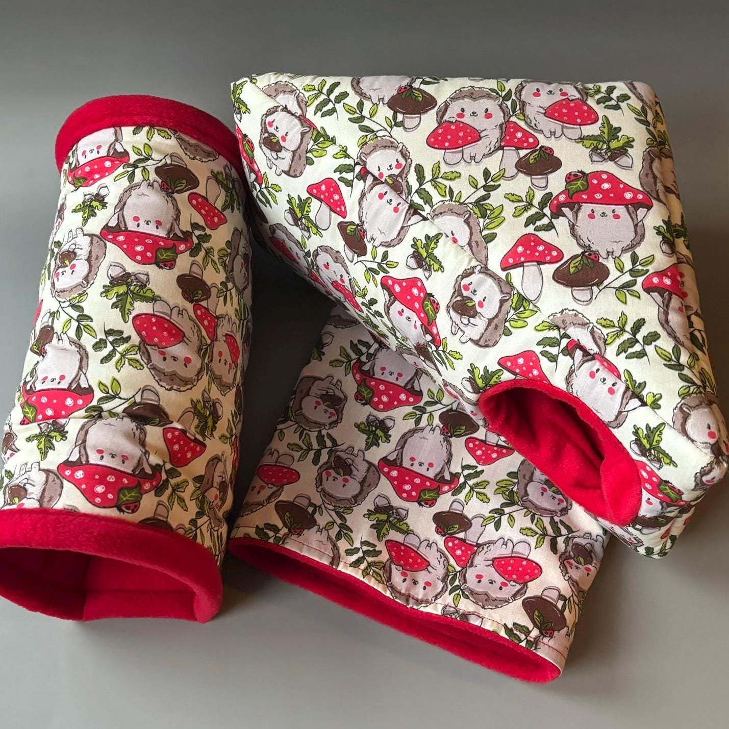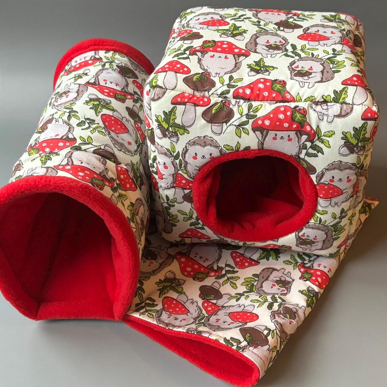 Hedgehogs with Mushroom Hats full cage set. Cube house, snuggle sac...