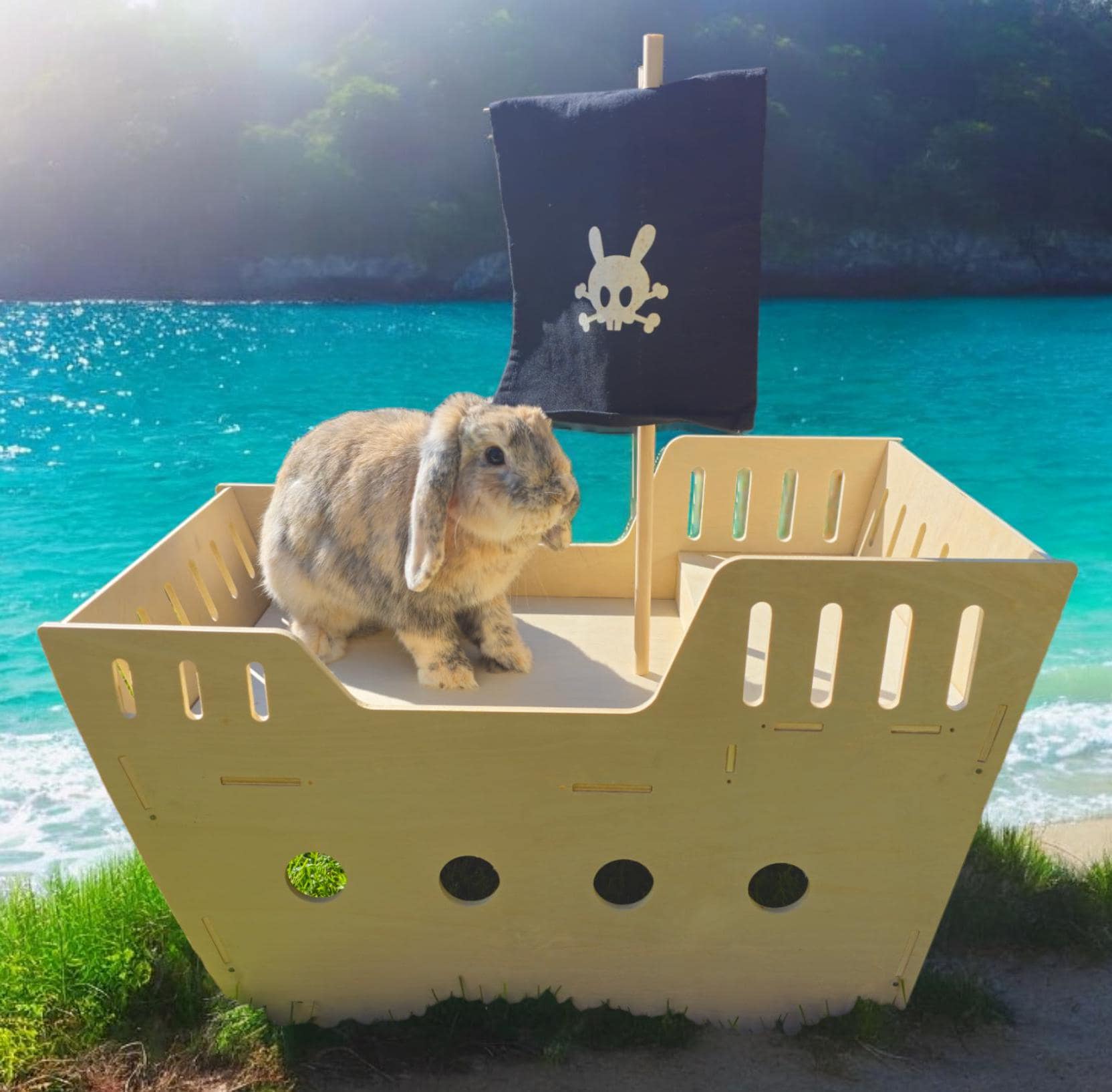 Pawsome Pods Rabbit pirate ship hideaway house is the must have for any indoor fun small pet enclosu...
