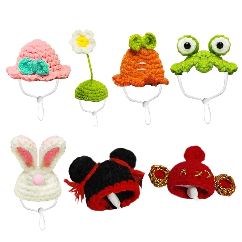 1 Pc Mini Hand-Crochet Pet Hats - Knitted Animal Caps for Hamsters, Parrots & Small Pets, Cute P...