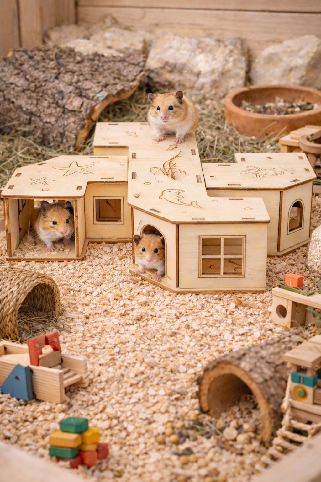 Give your hamster a warm, natural, and enriching home with this handmade modular wooden hamster hous...