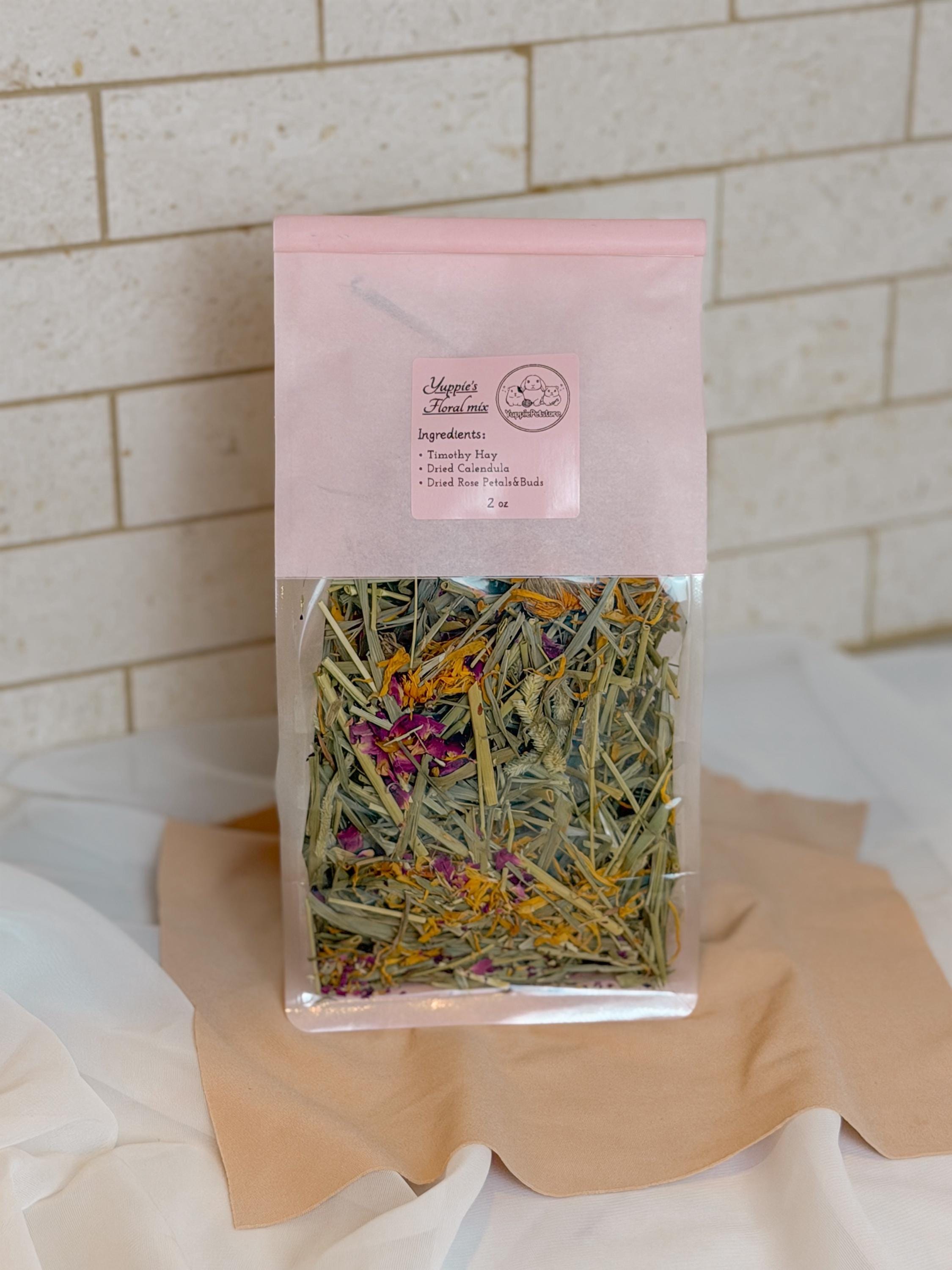 This foraging bag is floral and hay themed! 1 foraging bag containing 2oz of forage mix. Our top-qua...