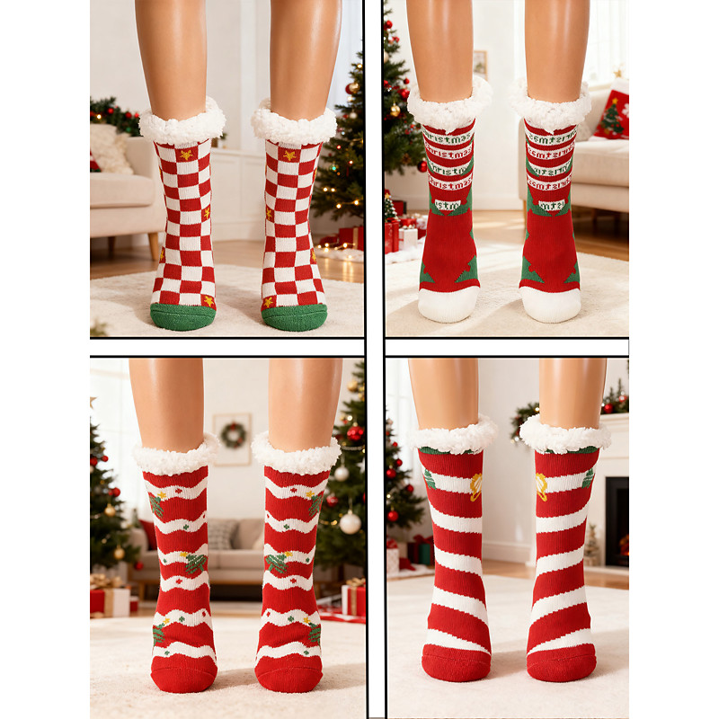 Women's 4 Pairs Christmas Fuzzy Home Socks Set, Cozy Plush Lined Wa...