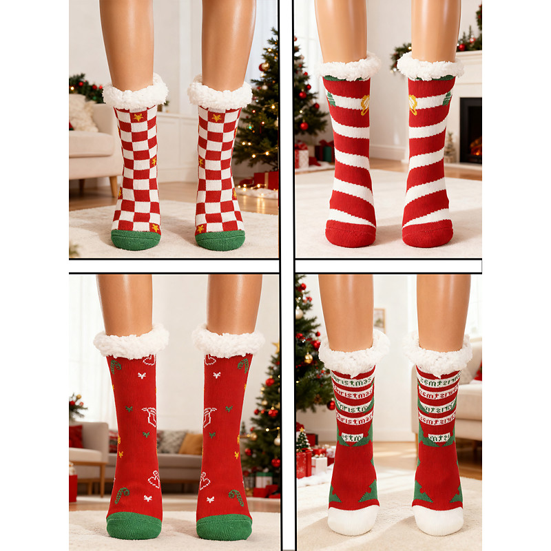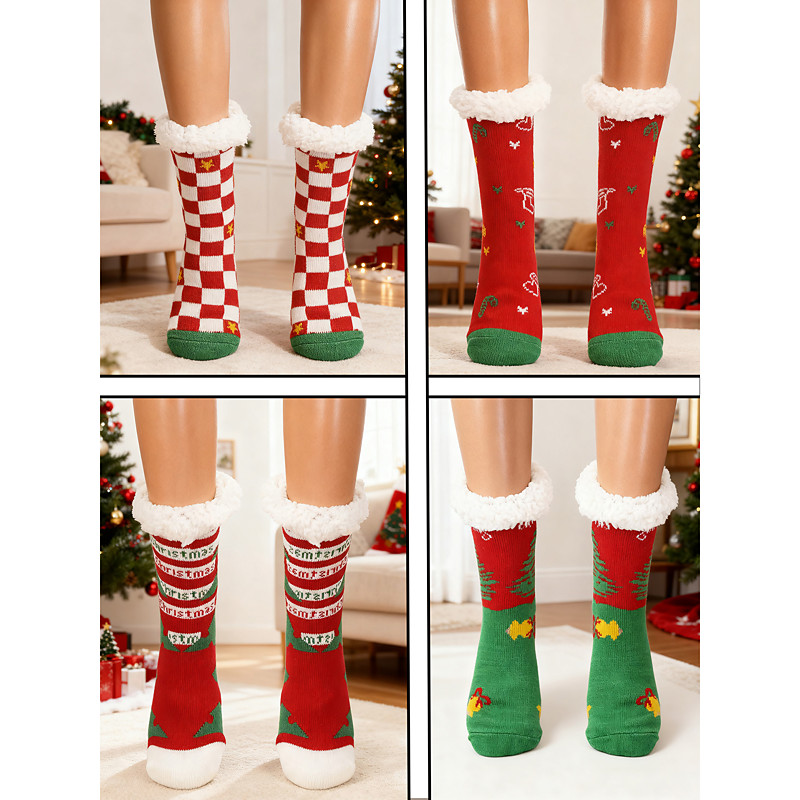 Women's 4 Pairs Christmas Fuzzy Home Socks Set, Cozy Plush Lined Wa...