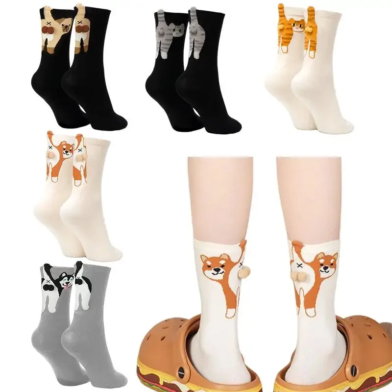 3 Pairs Set 3D Socks Cute Dogs White Black Mid Stockings Y2K Kawaii Dog Animals Socks Gift for Girl ...