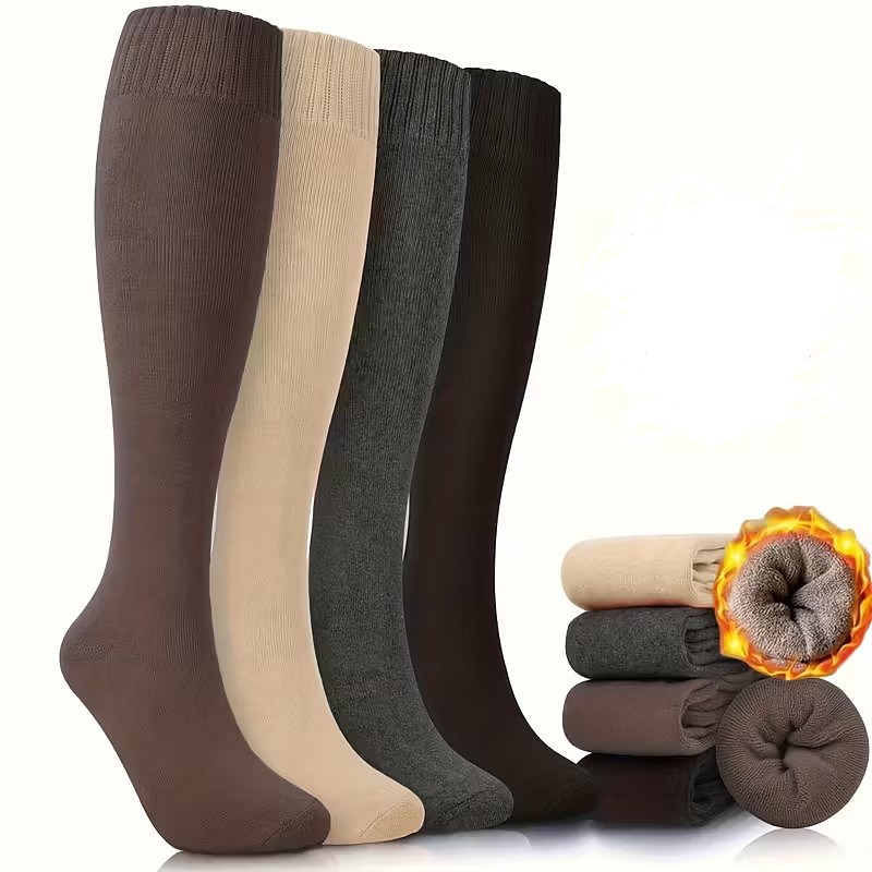 4 Pairs Women Over The Knee Thermal Socks, Thick Soft Warm Winter L...
