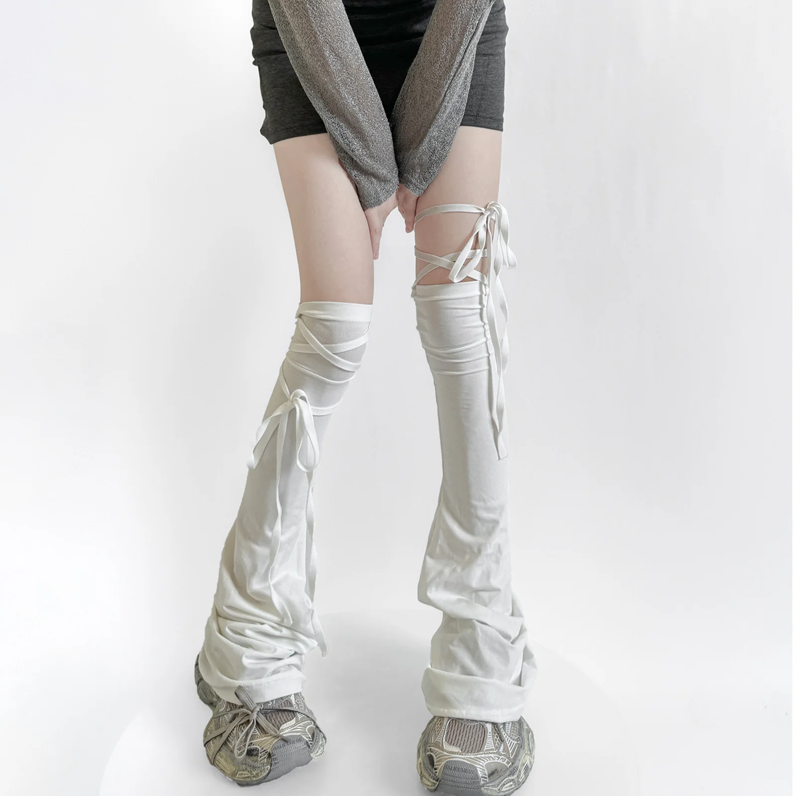 Y2k Women Leg Warmer, Soft Solid Color Over The Knee Tie-up Thigh-high Leg Warmers Socks for Party S...