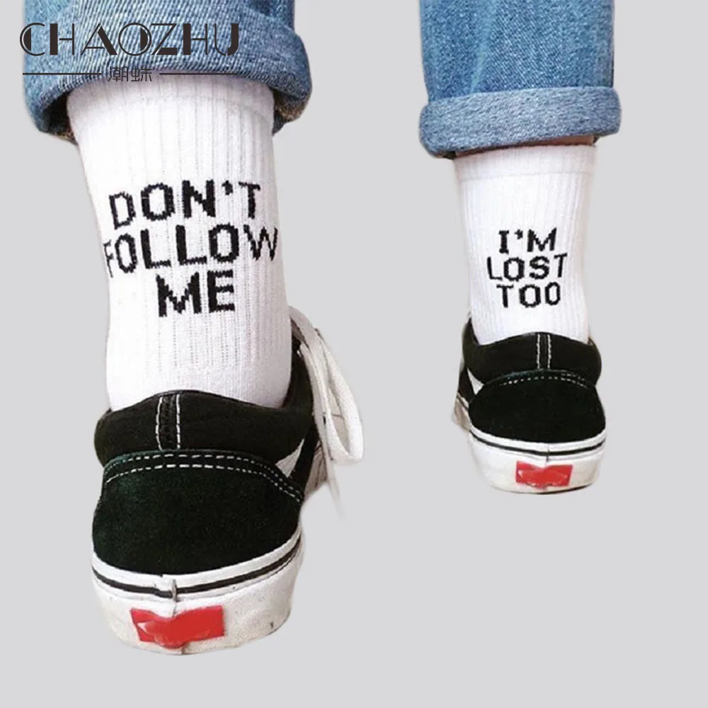 CHAOZHU Black White Cotton Socks AB Side Don't Follow Me I'm Lost Too Creative Unisex Women Men Casu...