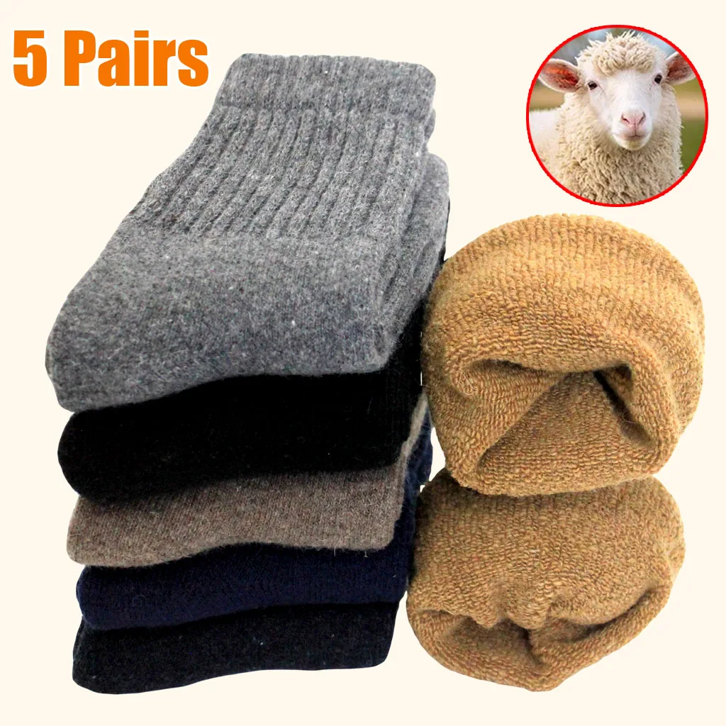 5 Pairs Winter Super Warm Socks Wool Male Men Women Socks Solid Super Thicker Socks Merino Wool Sock...