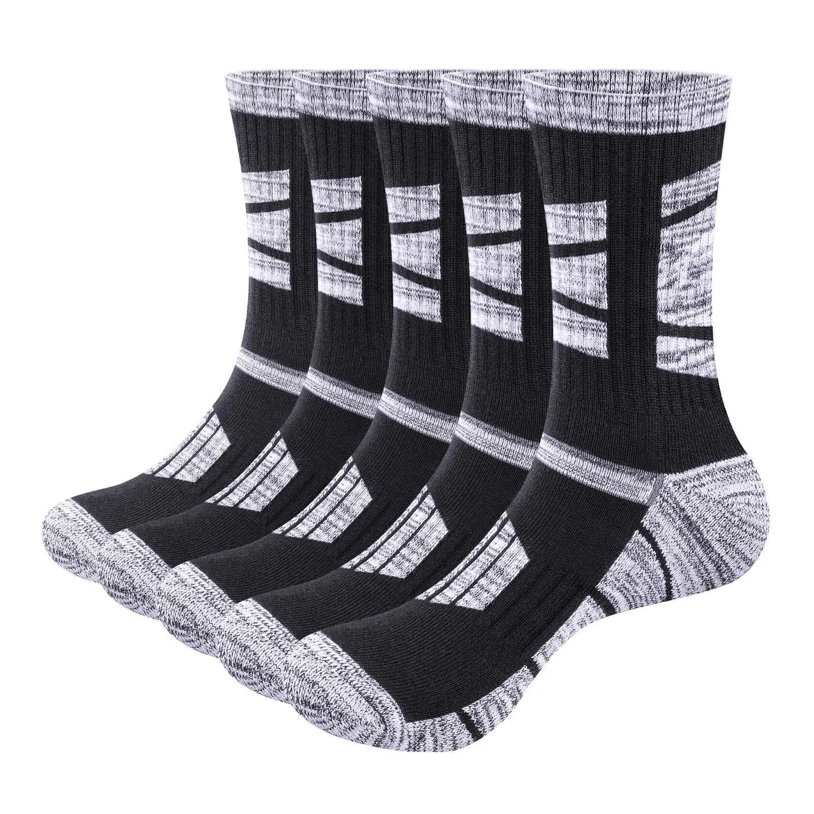 YUEDGE Mens Moisture Wicking Cushioned Crew Athletic Socks 5Pairs/Pack Walking Hiking Socks Padded W...
