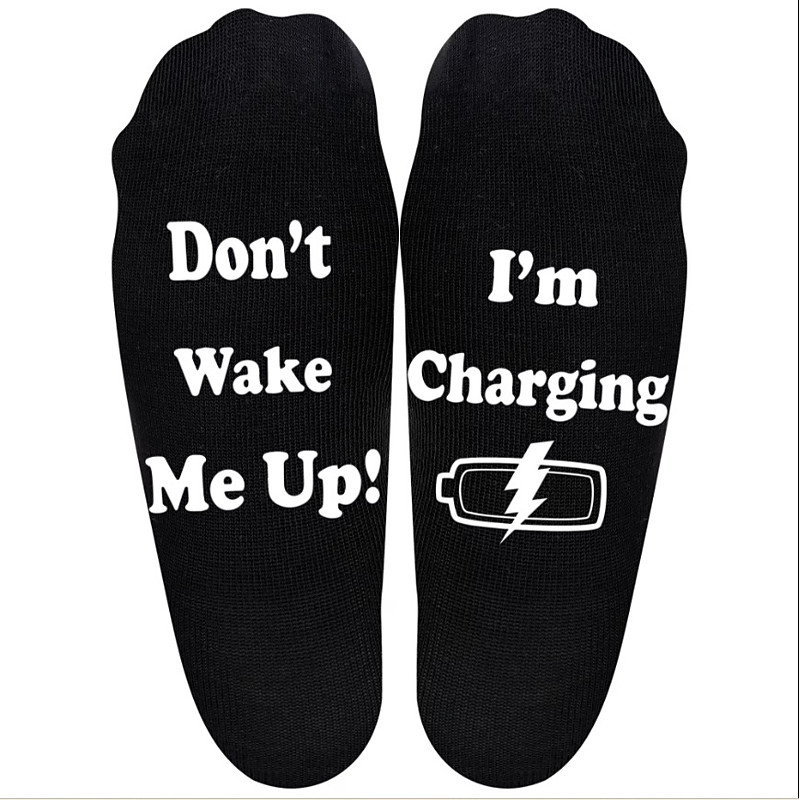 Don't Wake Me Up I'm Charging Funny Socks Men Funny Gifts for Men W...