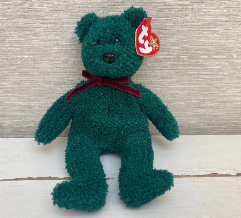 Ty Beanie Babies Holiday Teddy: Green Plush Bear, Red Scarf, 2001 (...