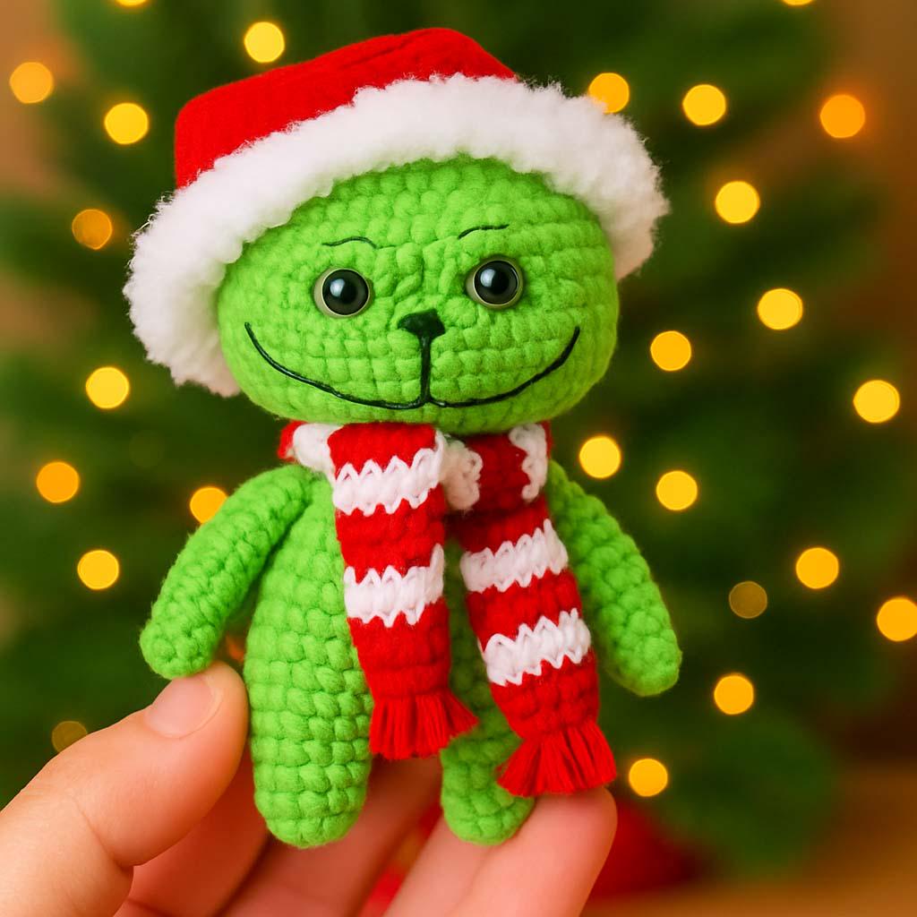 Crochet Grinch Doll with Santa Hat and Scarf, Handmade Amigurumi Ch...