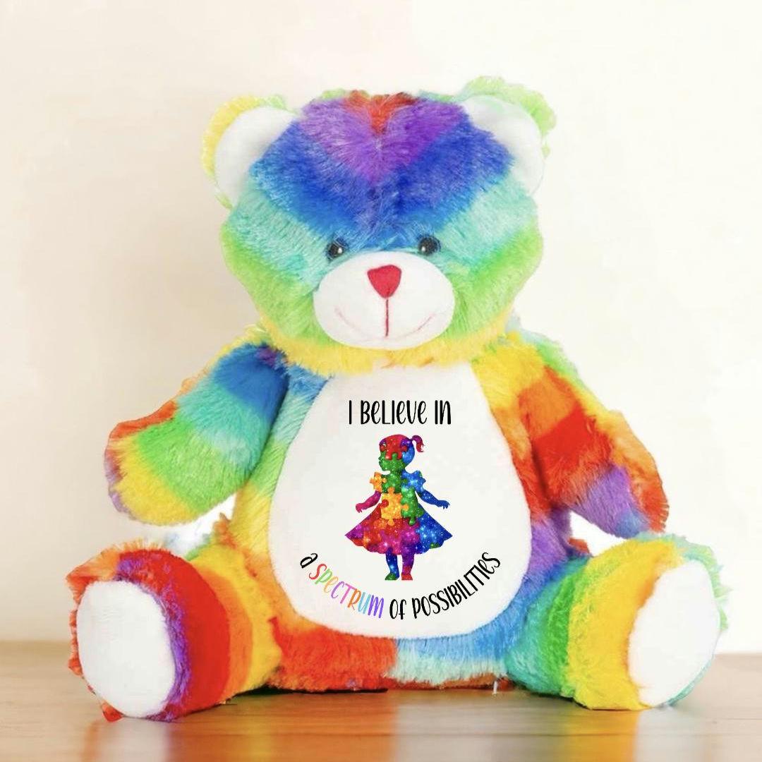 "Rainbow Bear Soft Toy for Autism Awareness Plush Toy with Message: This Rainbow Bear Soft Toy ...