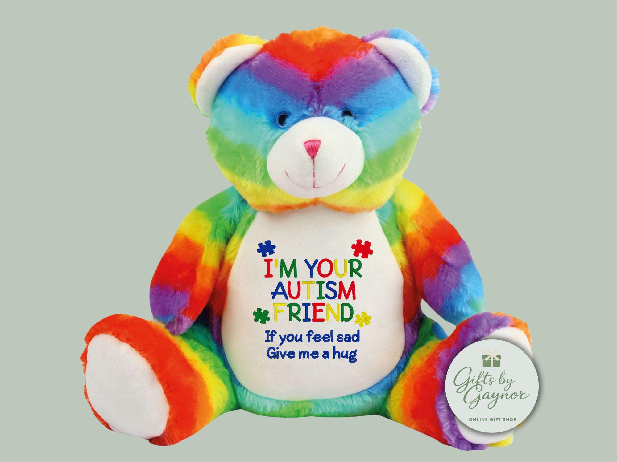 Personalised Autism Comfort Bear - Embroidered Rainbow Plush Toy | ...