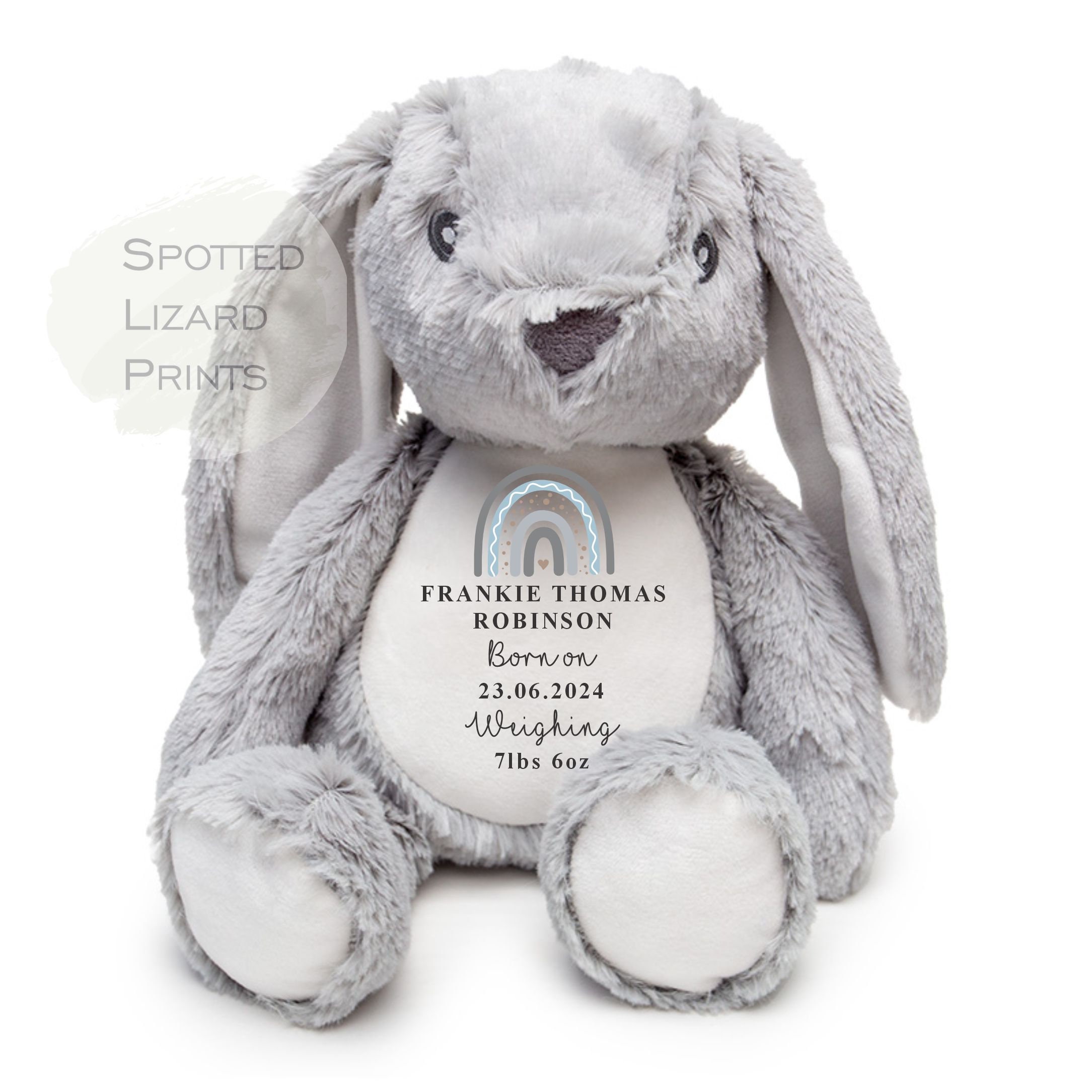 Personalised Baby Birth announcement Bunny Soft Toy Name, Weight and Date of Birth - Baby Shower - B...