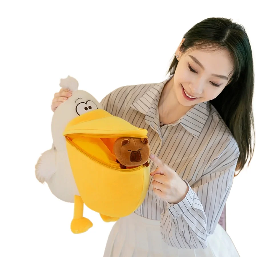 Pelican Capibara Plush Toy Big Mouth Bird Plushie Capybara Plush Fluffty Toy Cartoon Lovely Animal S...