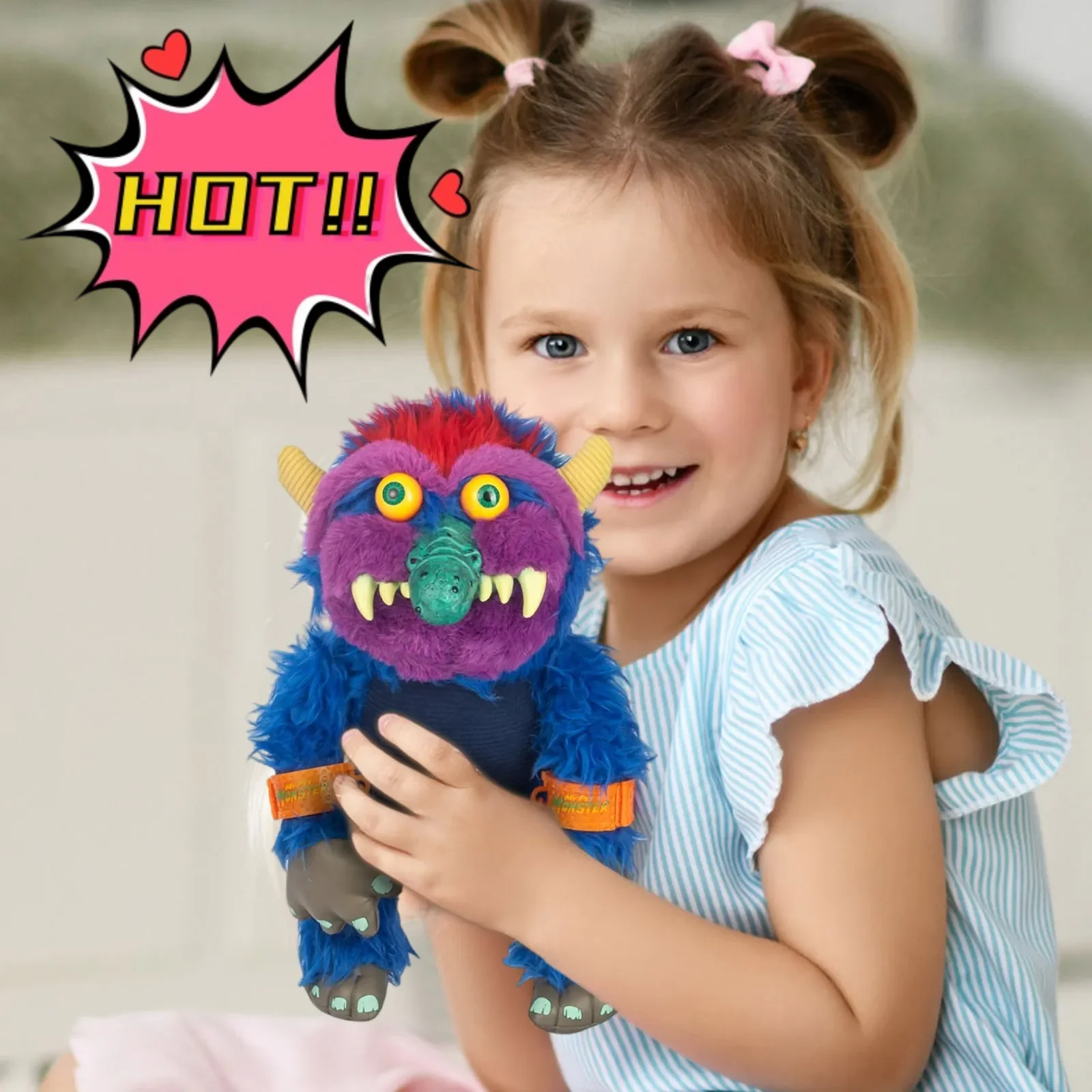 My Pet Monster Plush Toy, Fierce But Cute Stuffed Animal with Big E...