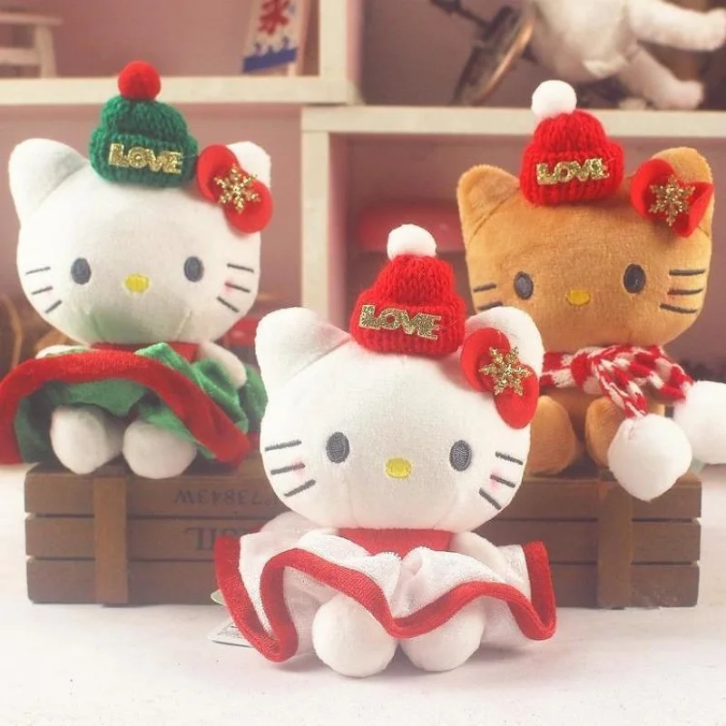 Sanrio Hello Kitty Winter Christmas Plush Cap Scarf Modeling Pendant Travel Backpack Decoration Chri...