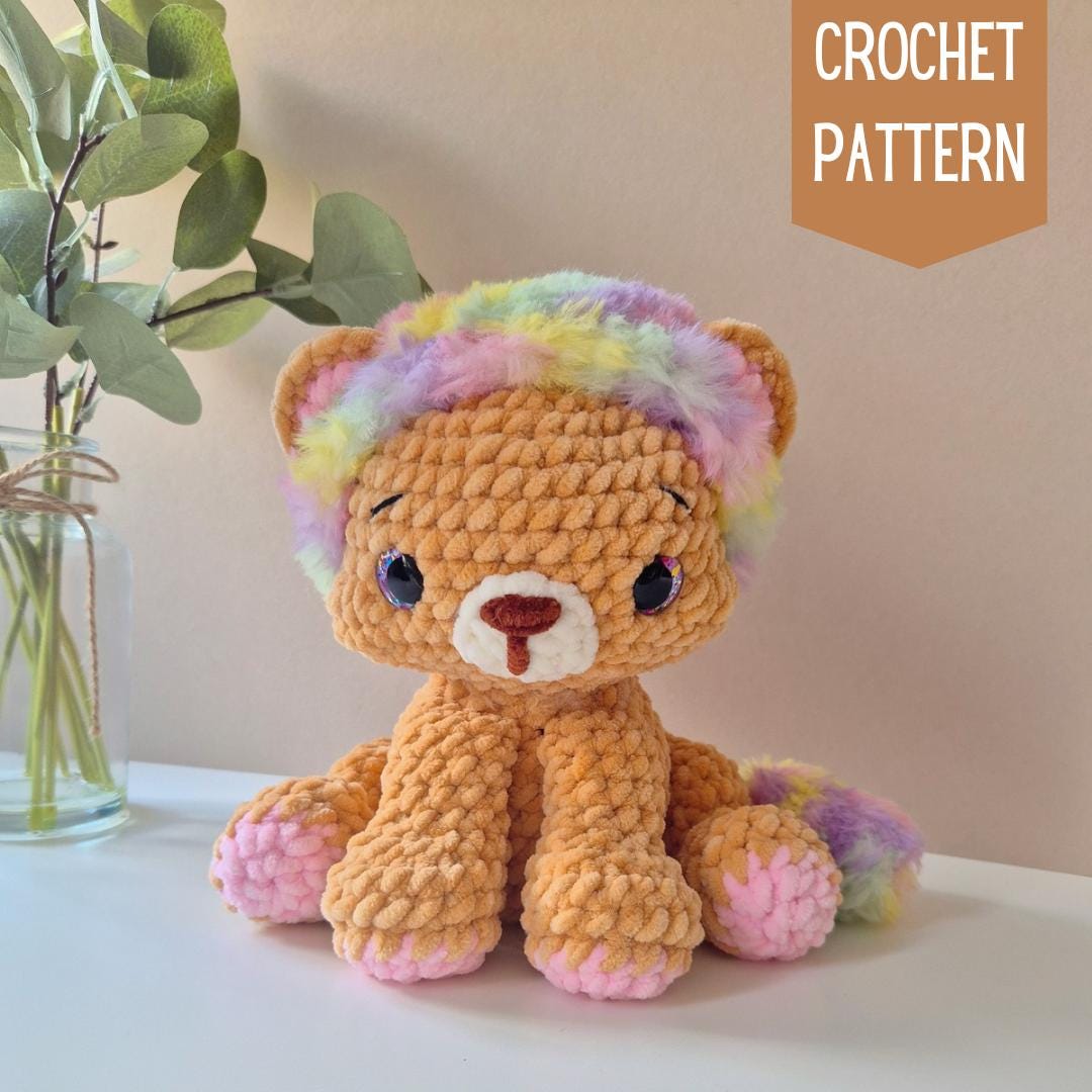 Amigurumi Lion Pattern, Plush pattern, Stuffed Lion toy, Black Pant...