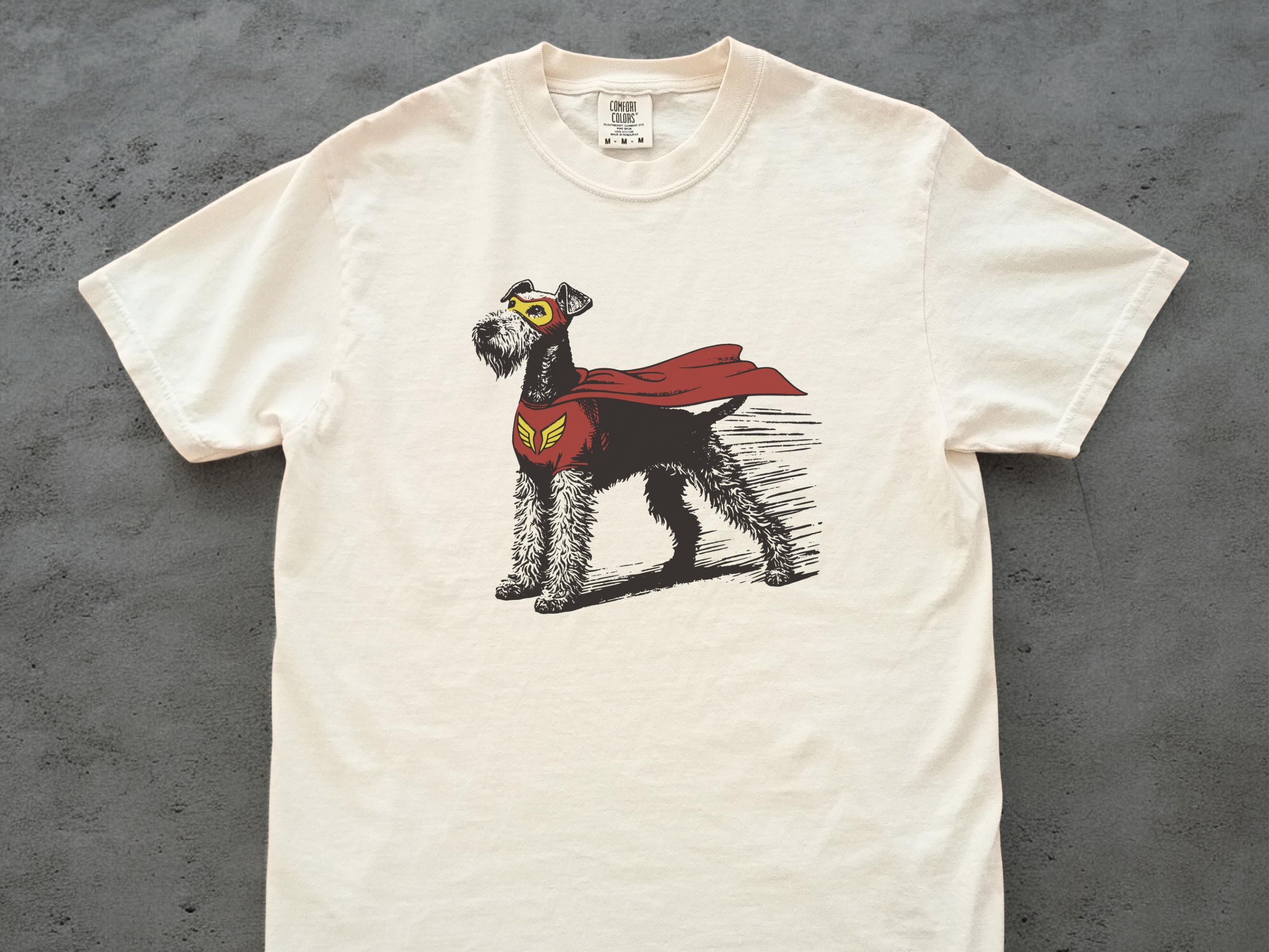 Airedale Terrier Superhero Comic Book Dog T-Shirt - Vintage Geek Ne...