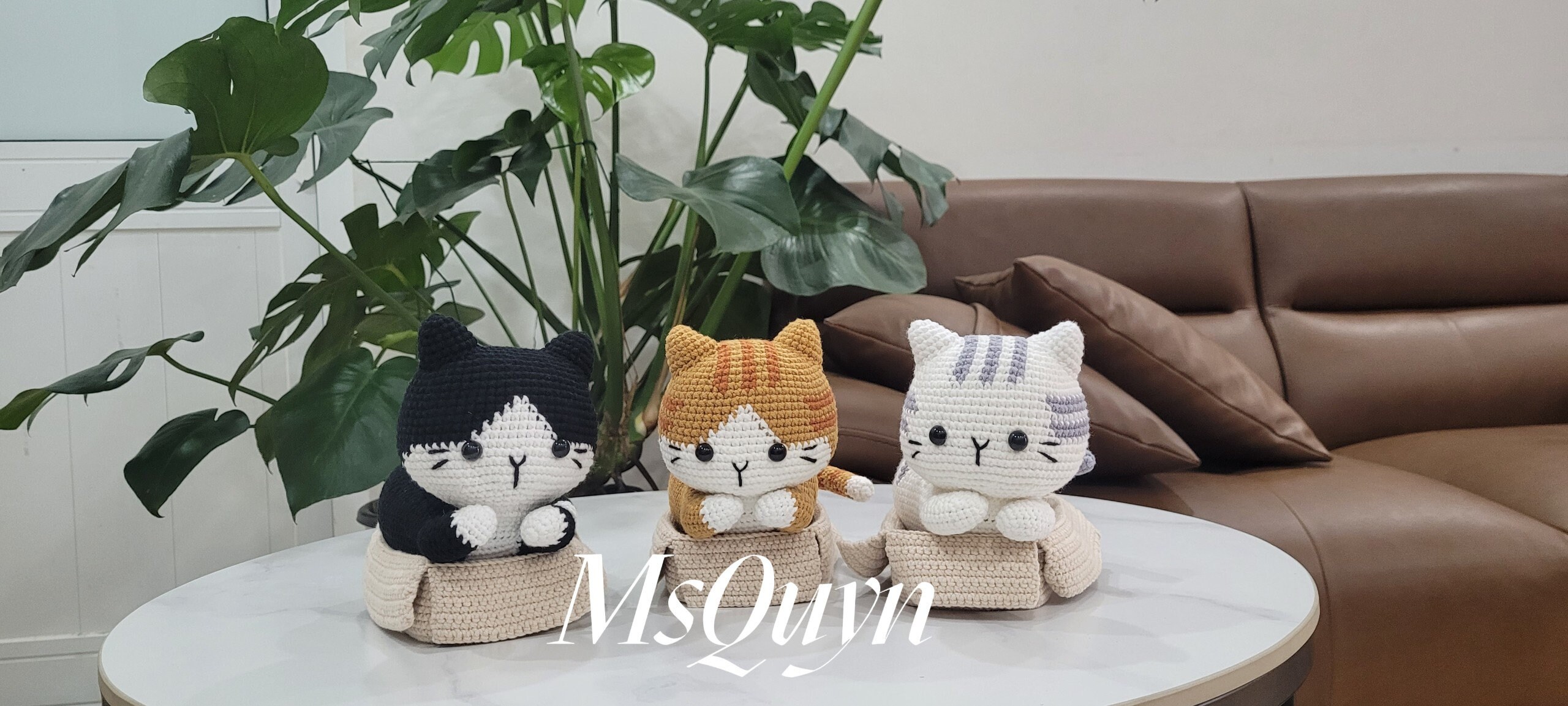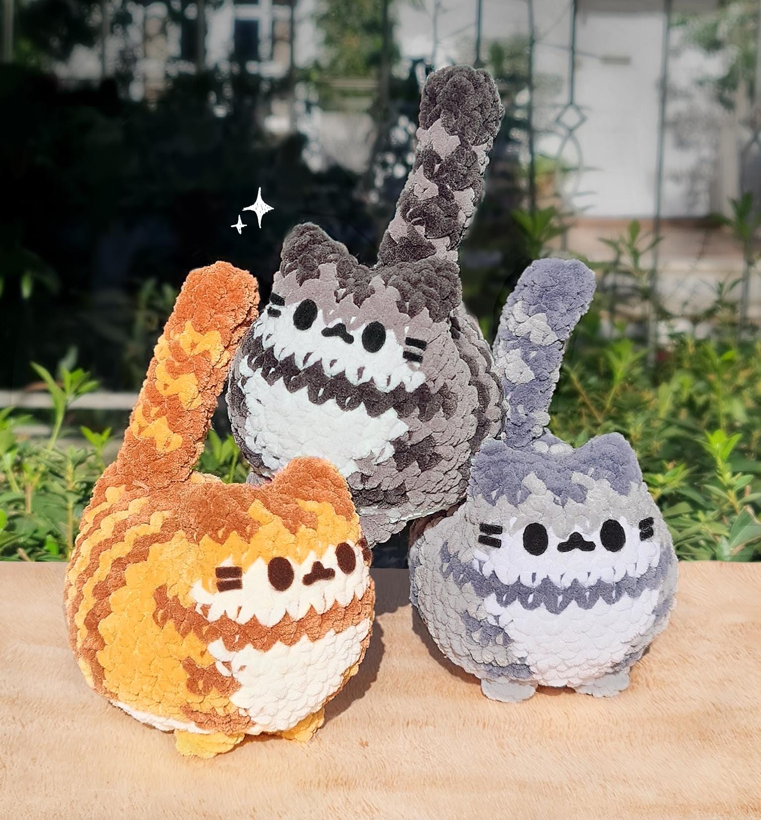 Crochet tabby cat plushies available in multiple variations: Grey Tabby, Orange Tabby, Ginger Tabby,...