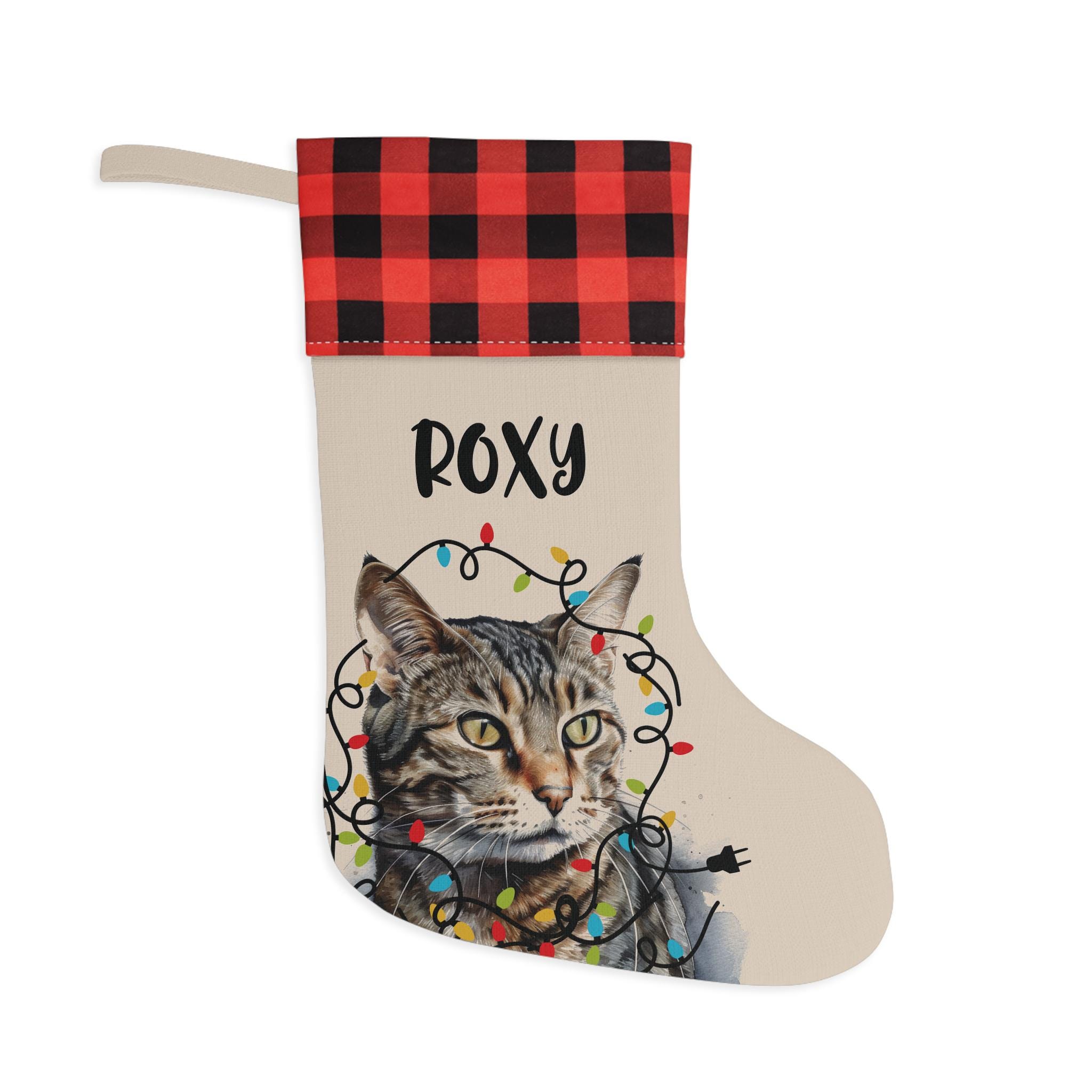 Personalized Tabby Cat Christmas Stocking, Cute Tabby Cat With Name...