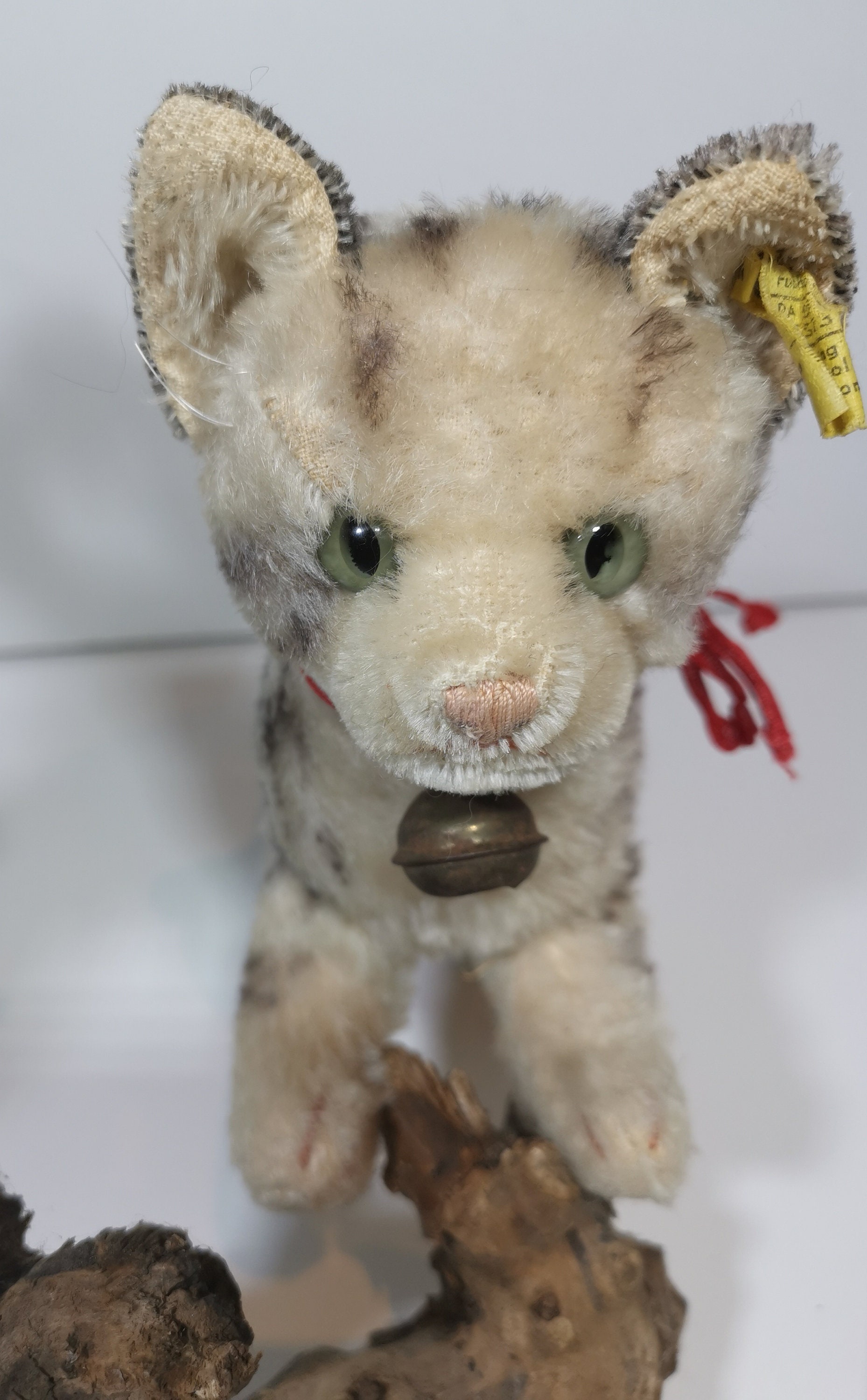 VTG Steiff Tabby Cat ,Kitty, Mohair Plush, Belly Squeaker ,15 cm ,w...