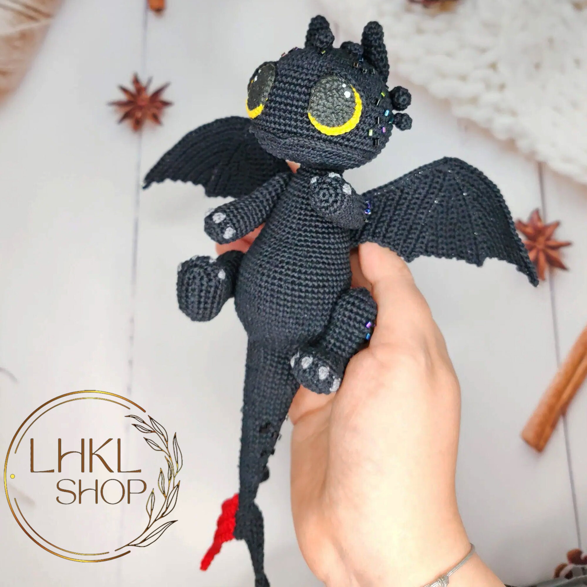 • Toothless Dragon Crochet, Toothless Dragon Plushie, Night Fury, Lig...