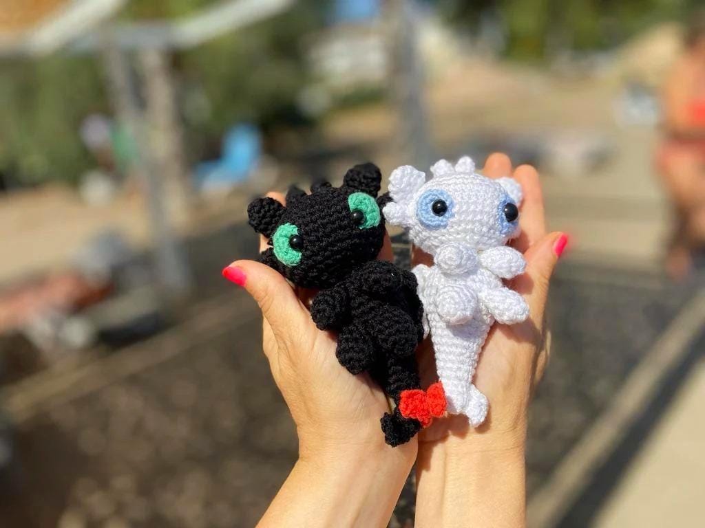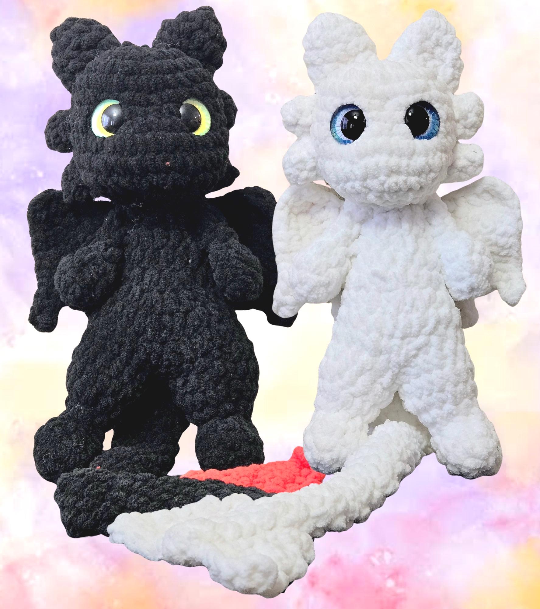 "Bring home the ultimate dragon duo with this lovingly handcrafted crochet Light Fury and Night...