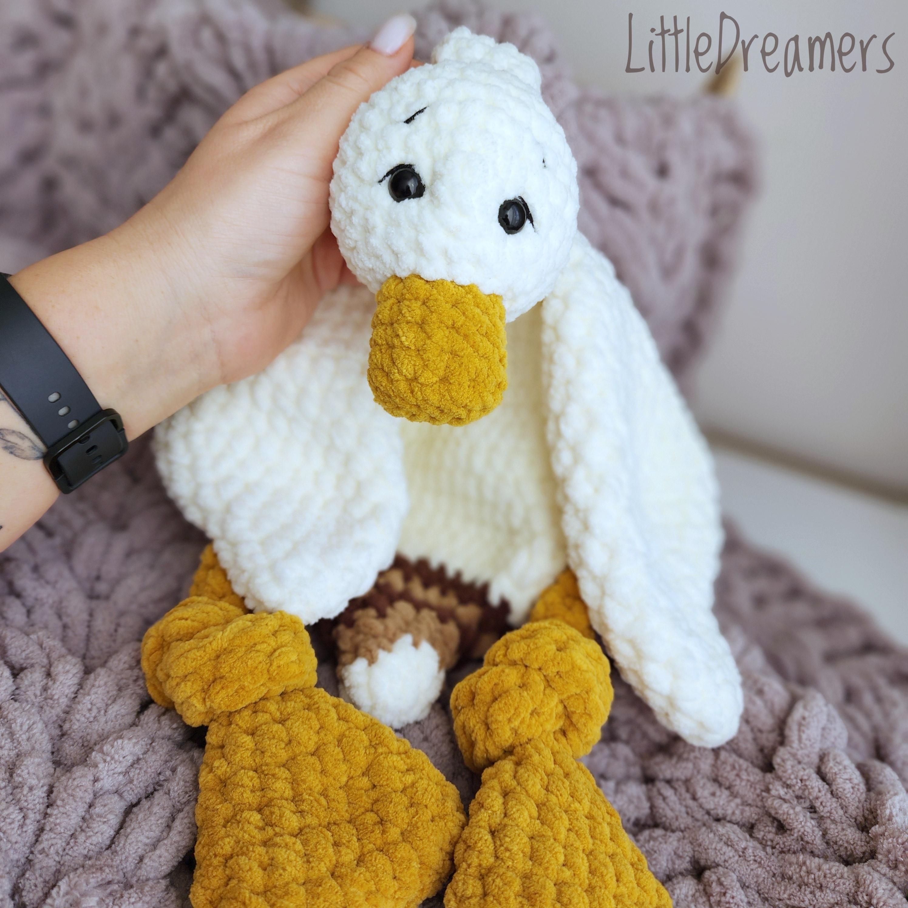Duck snuggler Baby security blanket Crochet stuffed animal toy Croc...