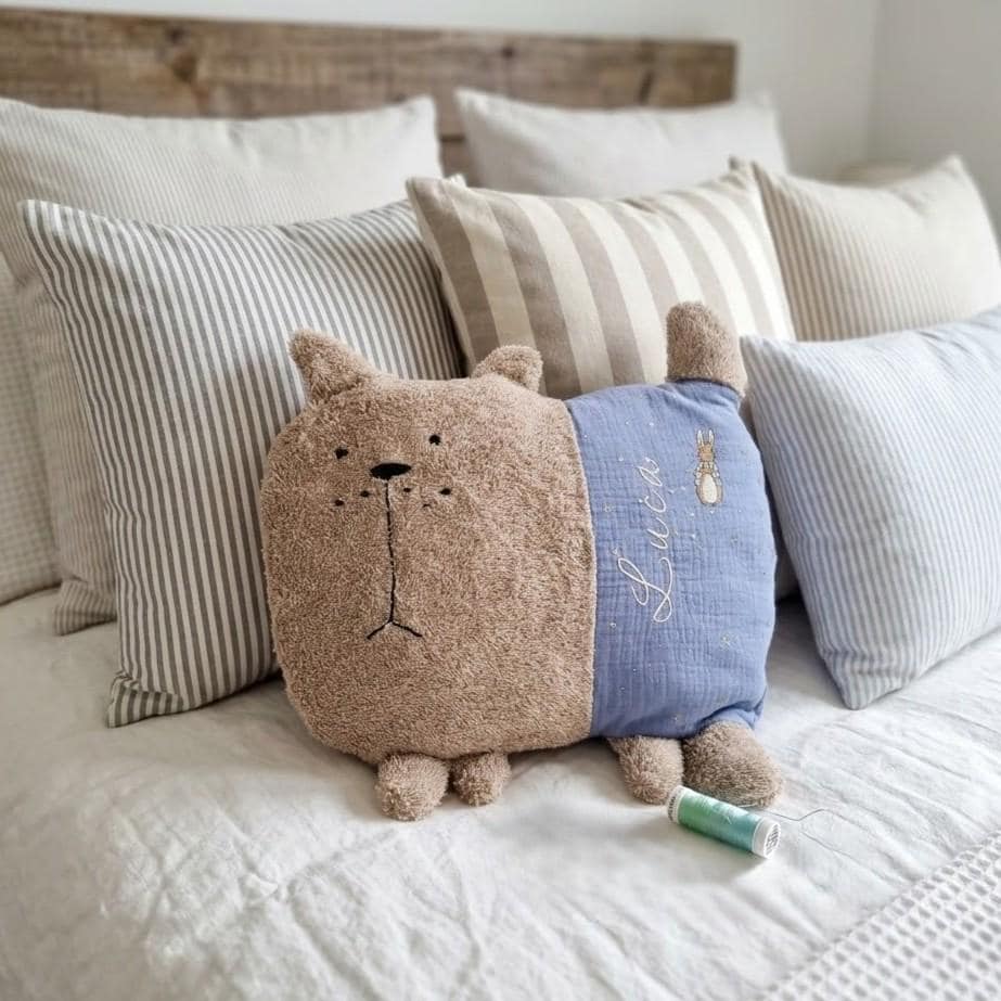 "Personalized muslin cuddly cushion - handmade unique piece with embroidery. Whether as a speci...