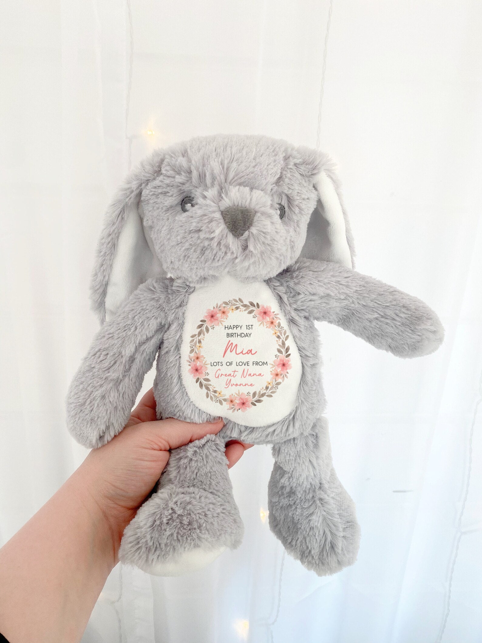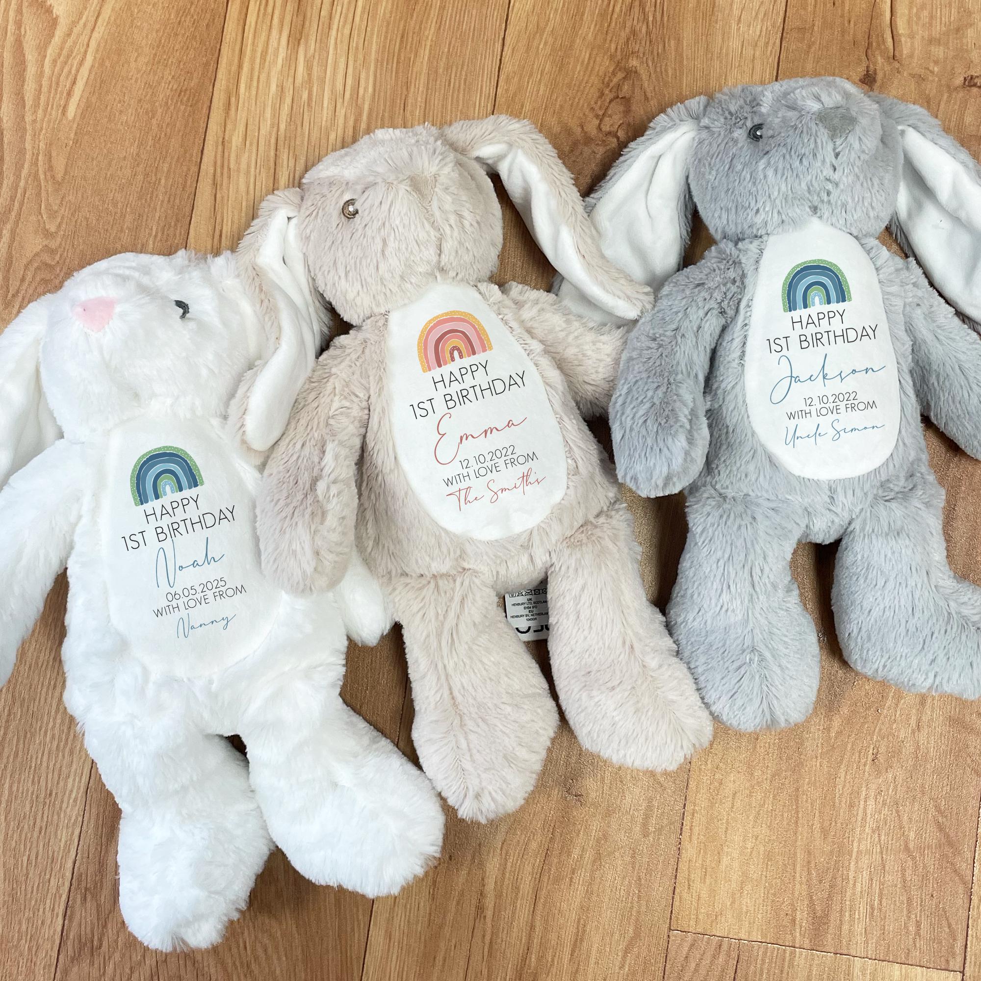 These stunning personalised bunny rabbit plush toys are the perfect gift for a first birthday. A 1st...