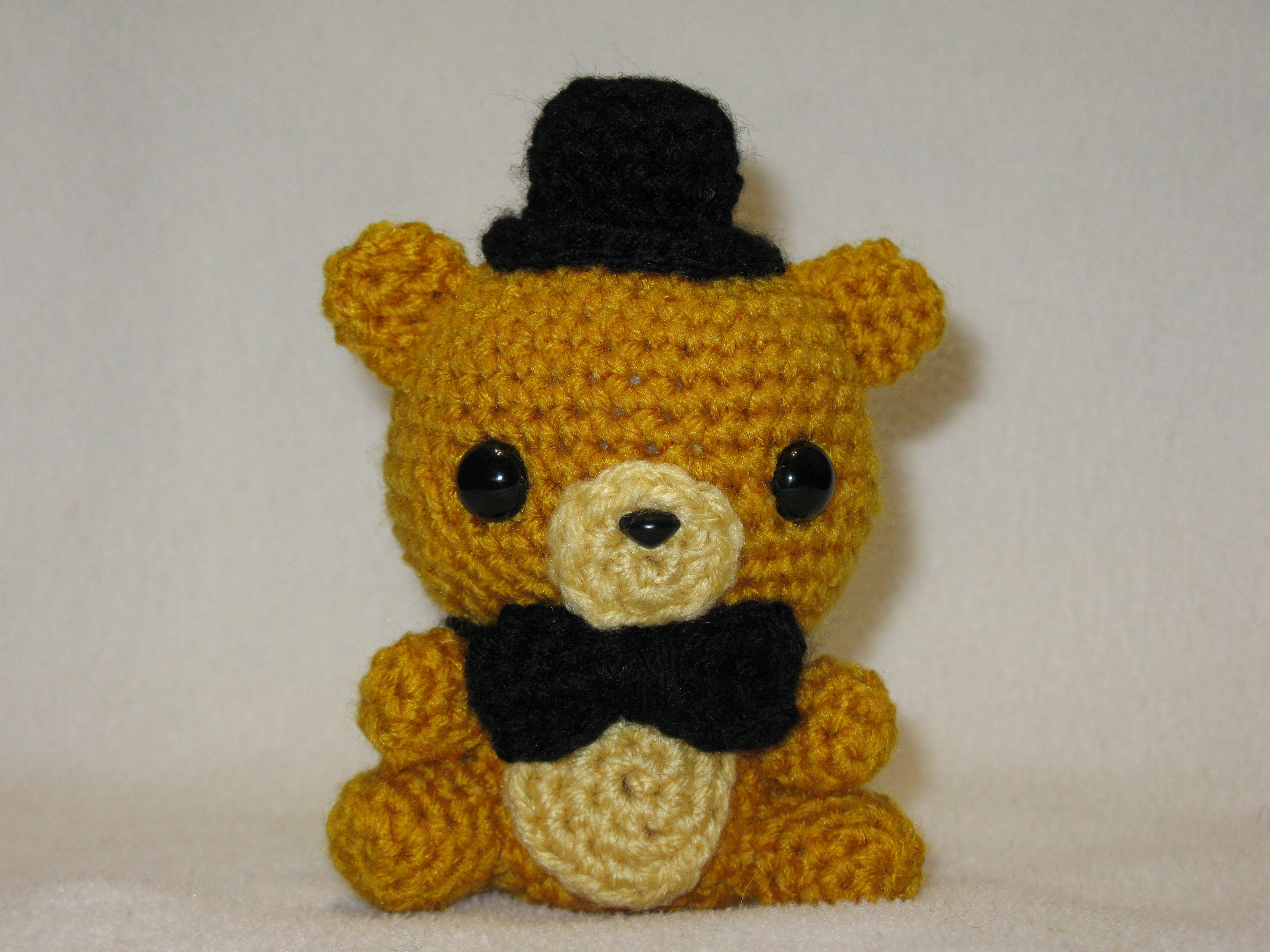 This adorable little plush Golden Freddy is handmade with love using acrylic yarn, polyester fiber-f...