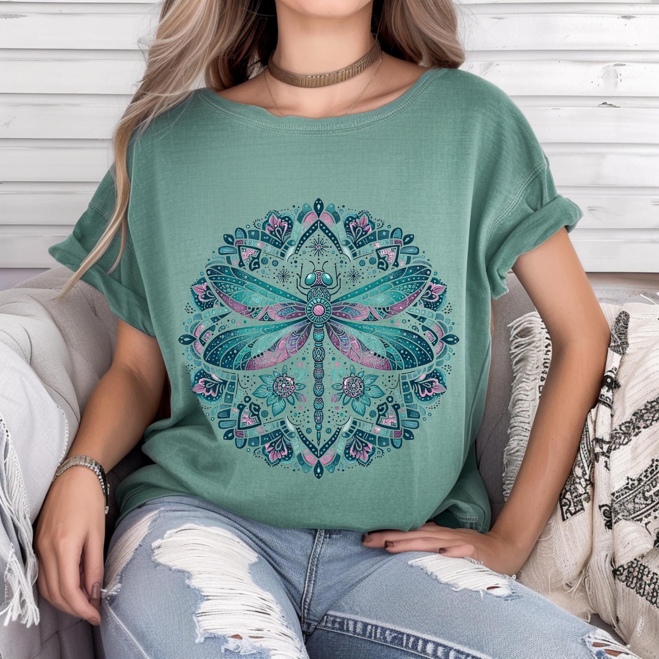 Comfort Colors Boho Dragonfly Desing Shirt,Cute Dragonfly Shirt, Dr...