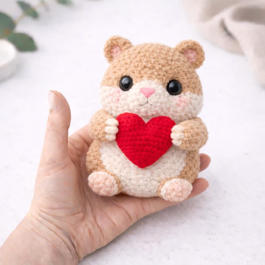 Crochet Hamster Holding With Heart Handmade Crochet Hamster Plushie, Amigurumi Hamster, Adorable Ham...