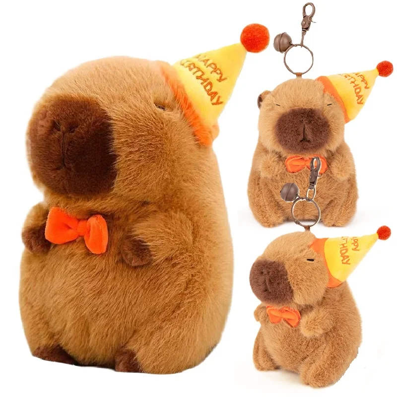 Capybara Plush Toy Birthday Hat Doll Cute Capibara Stuffed Keychain...