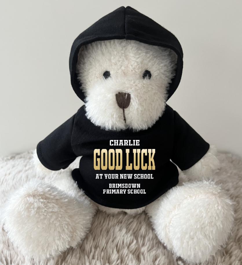Personalised Good Luck New School hoodie bear. Such an adorable keepsake & a comfort mascot for ...