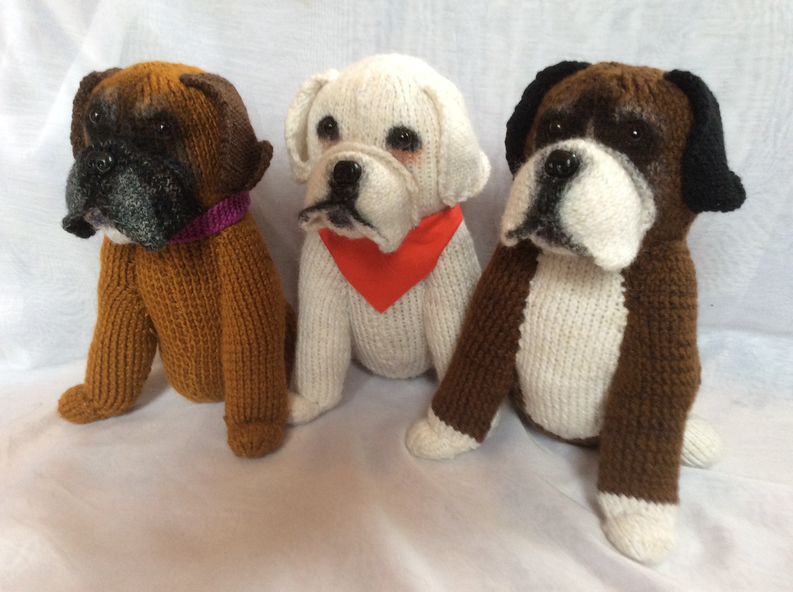 Beautiful hand knitted boxer dog Made with love care & attention to detail Measuring Approximate...