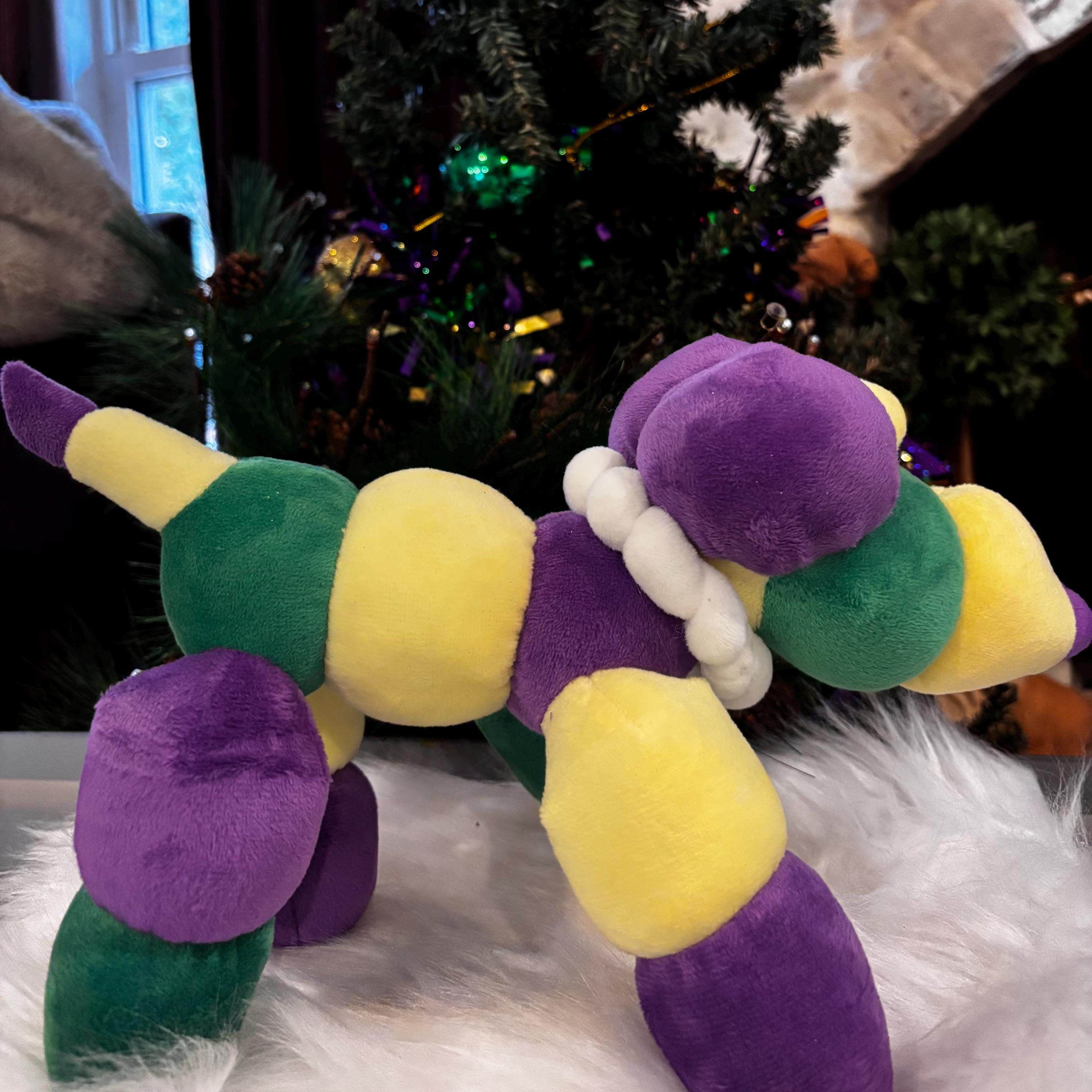 Mardi Gras Bead Dog Plush 10x10x5 inches, Purple, Green and Gold Ba...