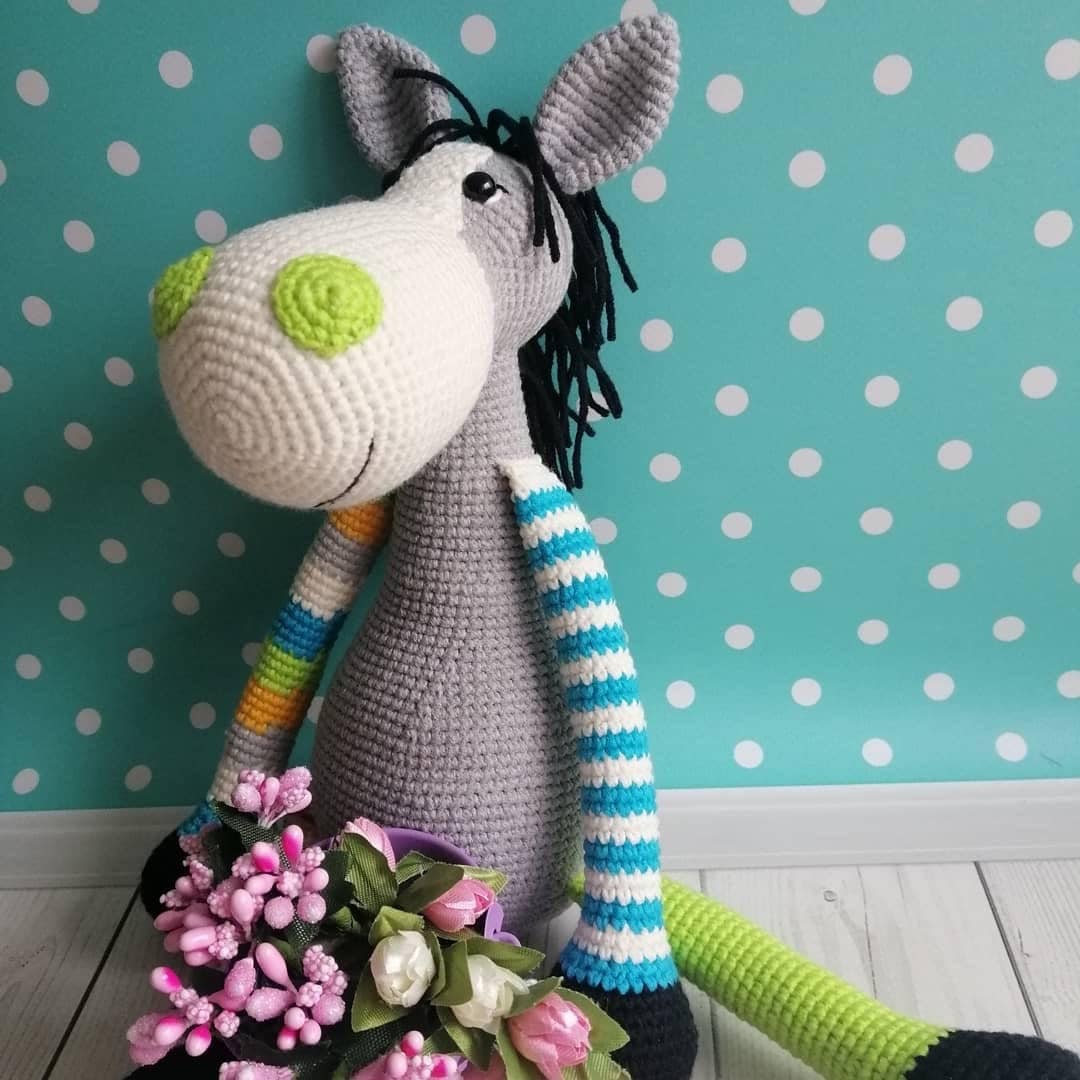 Cute knitted horse for children handmade toy horse for a gift croch...