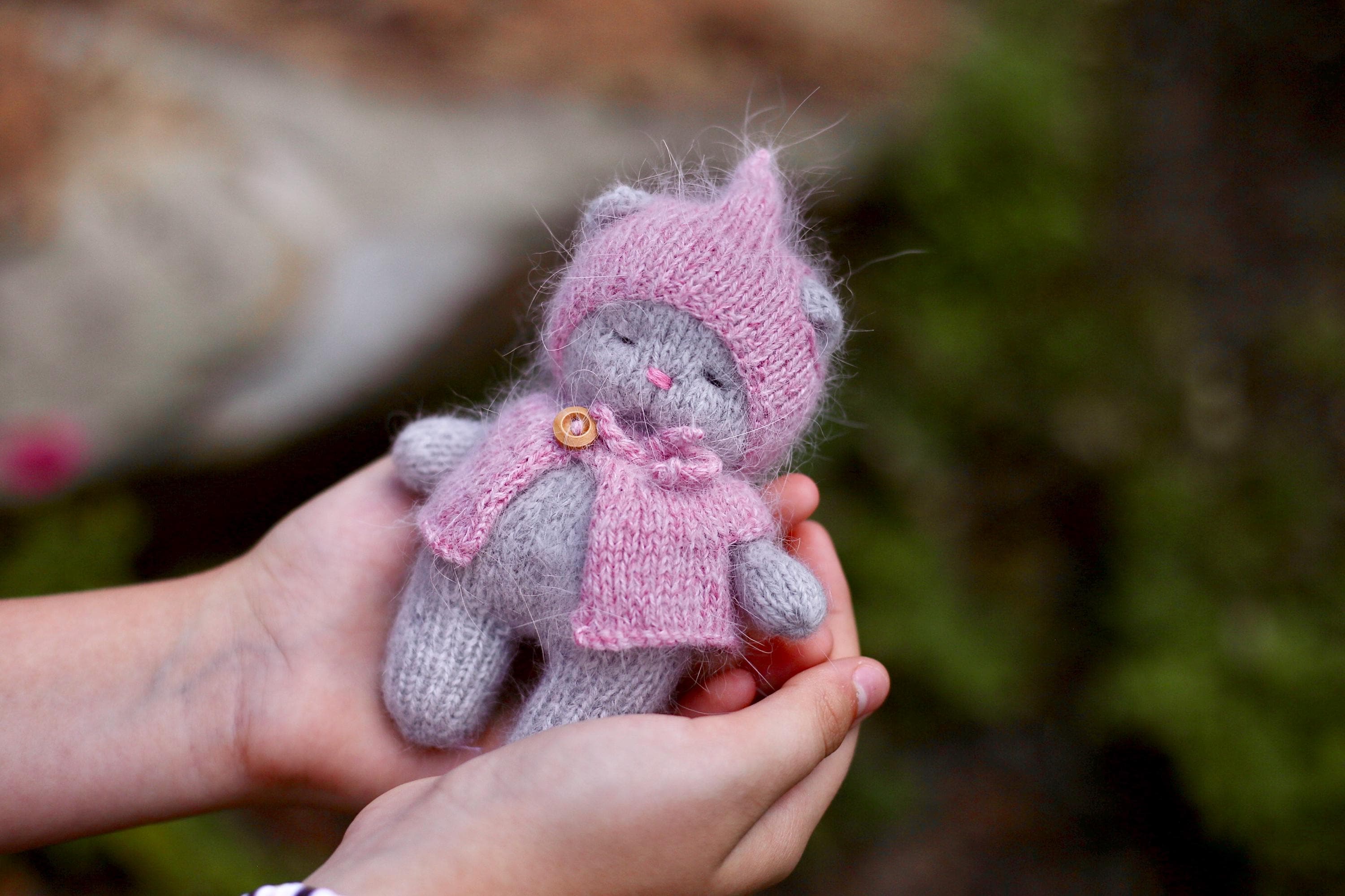 Handknitted Kitten Toy Soft Plush Cat Handmade Kitten Handmade Gift...