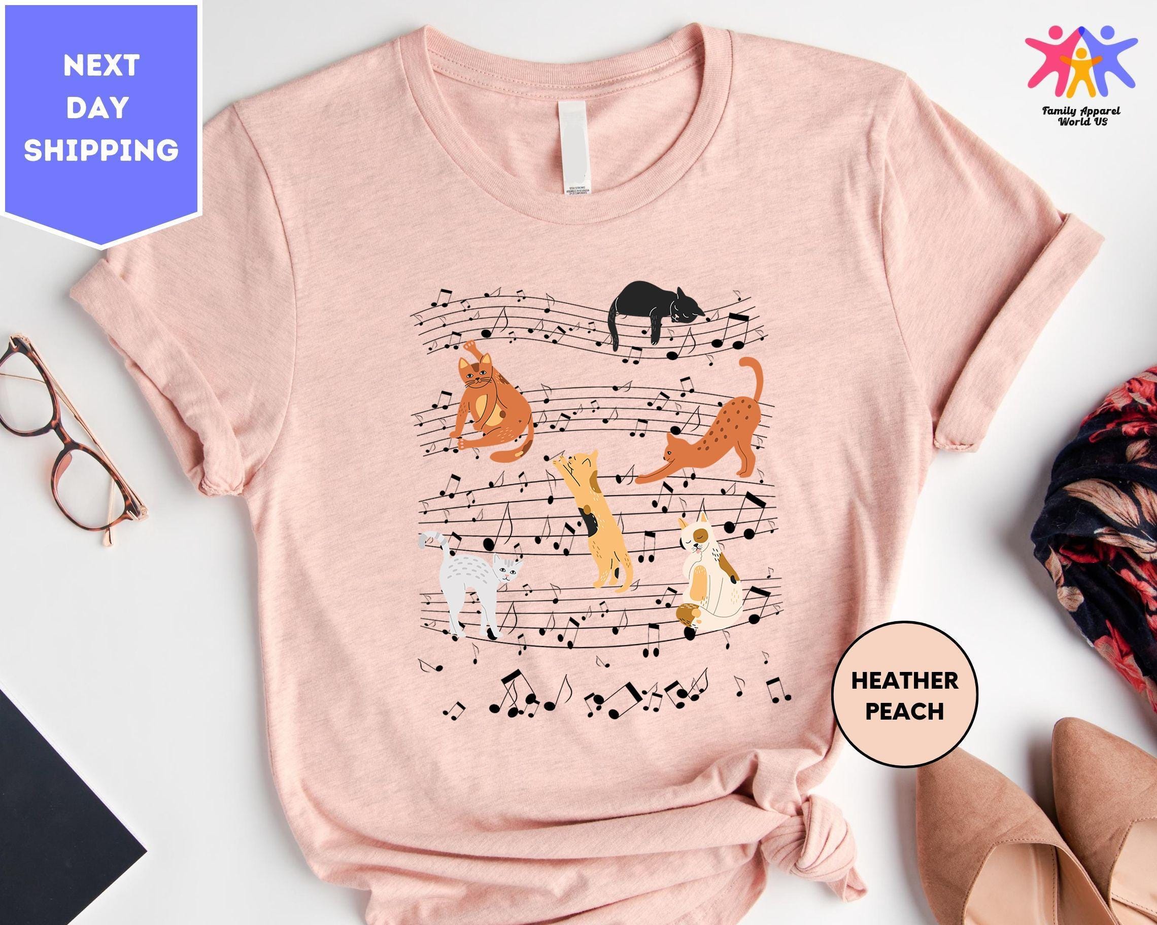"Cat With Music Note Shirt, Music Teacher Shirt, Music Cat Lover, Teacher Shirt, Kitten Shirt, ...