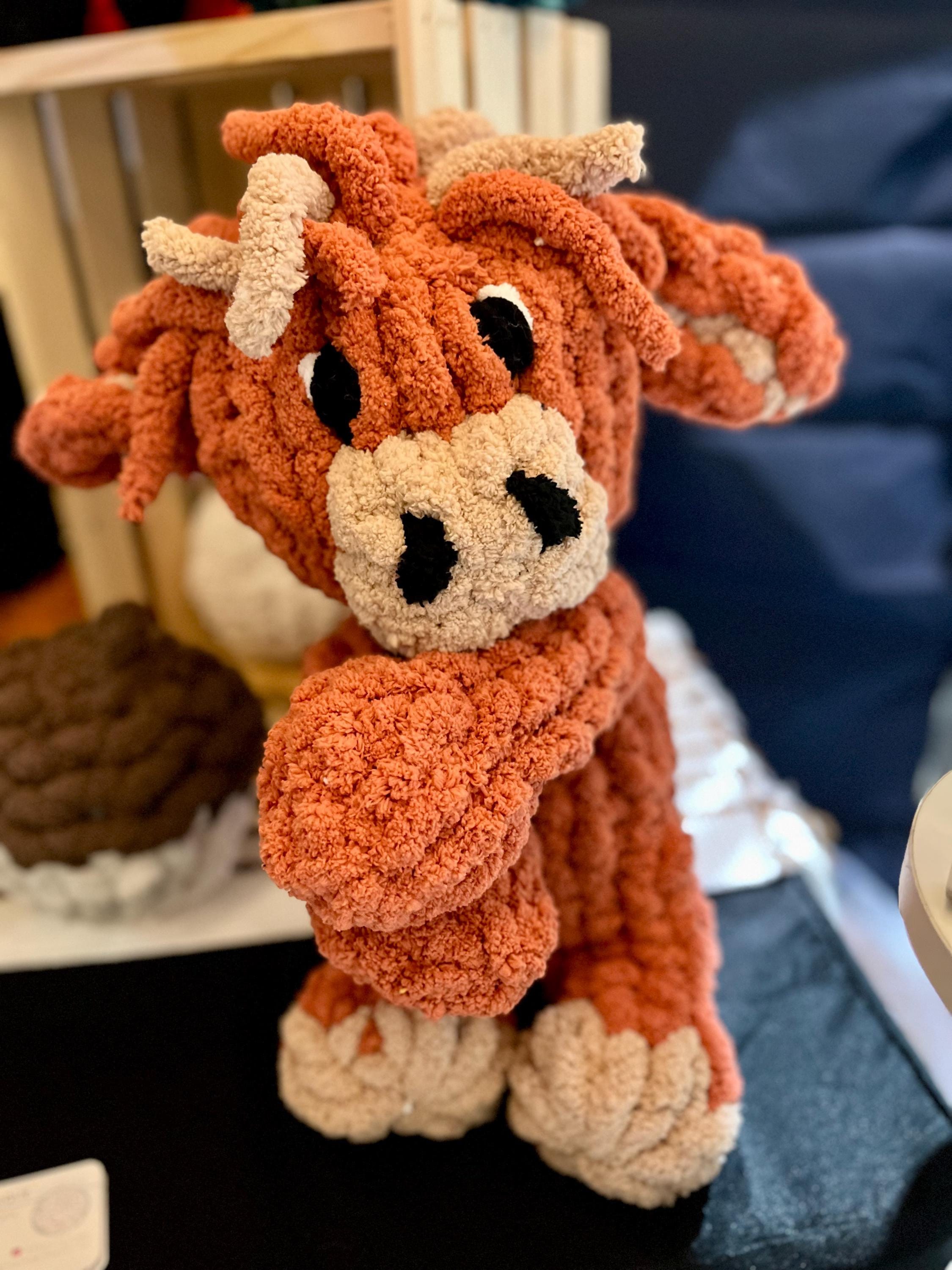 "Meet Cielo the Hand-Knit, Stuffed Highland Cow! Say hello to Cielo, your new cuddly companion!...