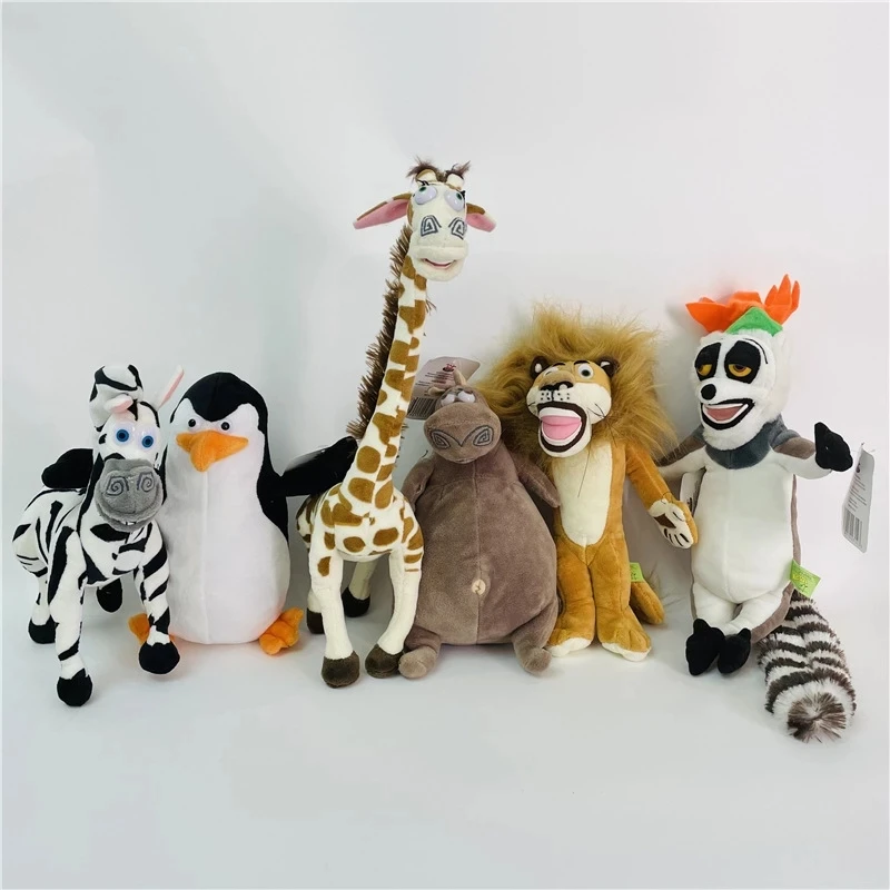 Madagascar Plush Penguin Animals Toys,Lion Alex Zebra Marty Giraffe Melman Hippopotamus Gloria Peluc...