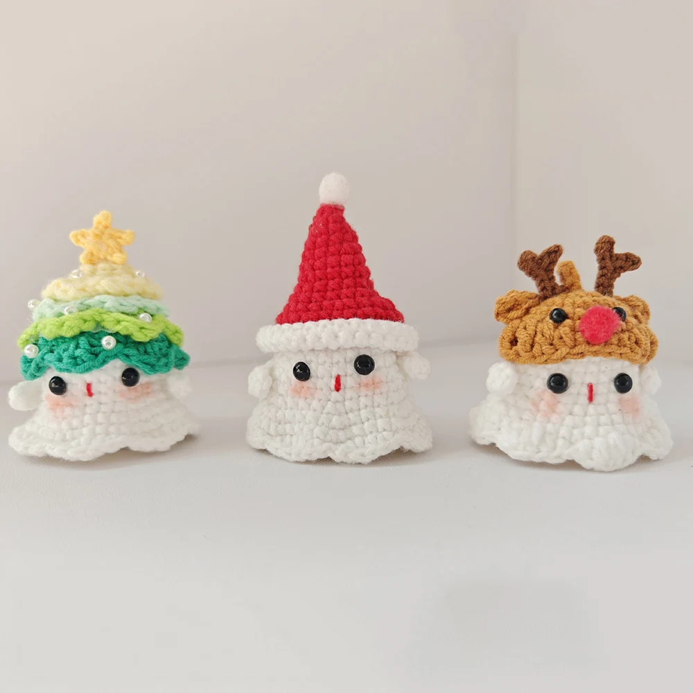 Funny Crochet Elk Deer Hat Ghost Doll Pendant Home Room Decoration Cute Handmade Knitted Xmas Tree G...