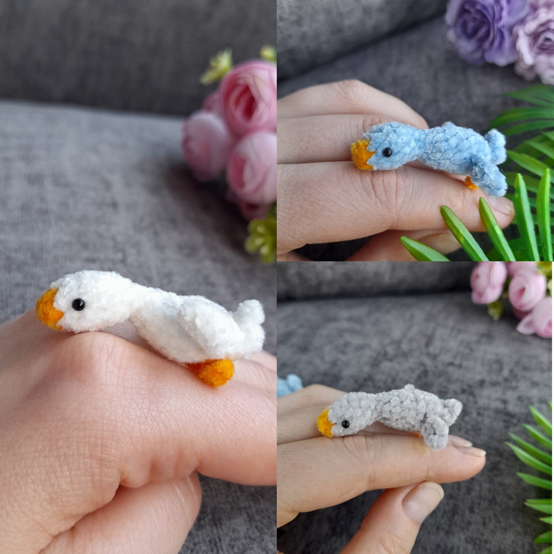 Micro plush Goose White, Grey, Blue amigurumi toy. Pocket Plush Pet...